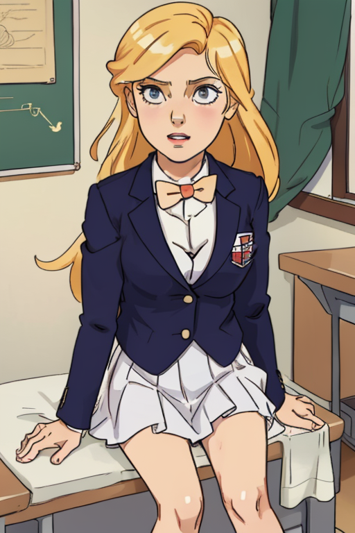 Minerva, sometimes spelled incorrectly as Minelba, the Headmaster Junior from the Japanese-exclusive Super-God Masterforce anime. Works best at .7-.8 weight depending on which outfit you choose. Activated using "minerva_headmaster". For her standard outfit, add "blazer, school uniform, long blonde hair". For her Master armor, add "armor, power suit, wearing helmet". Can do NSFW. Will not generate her transtector, but I will be uploading a separate lora for that fairly soon.