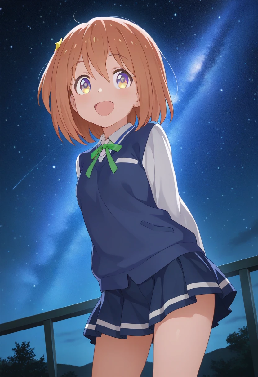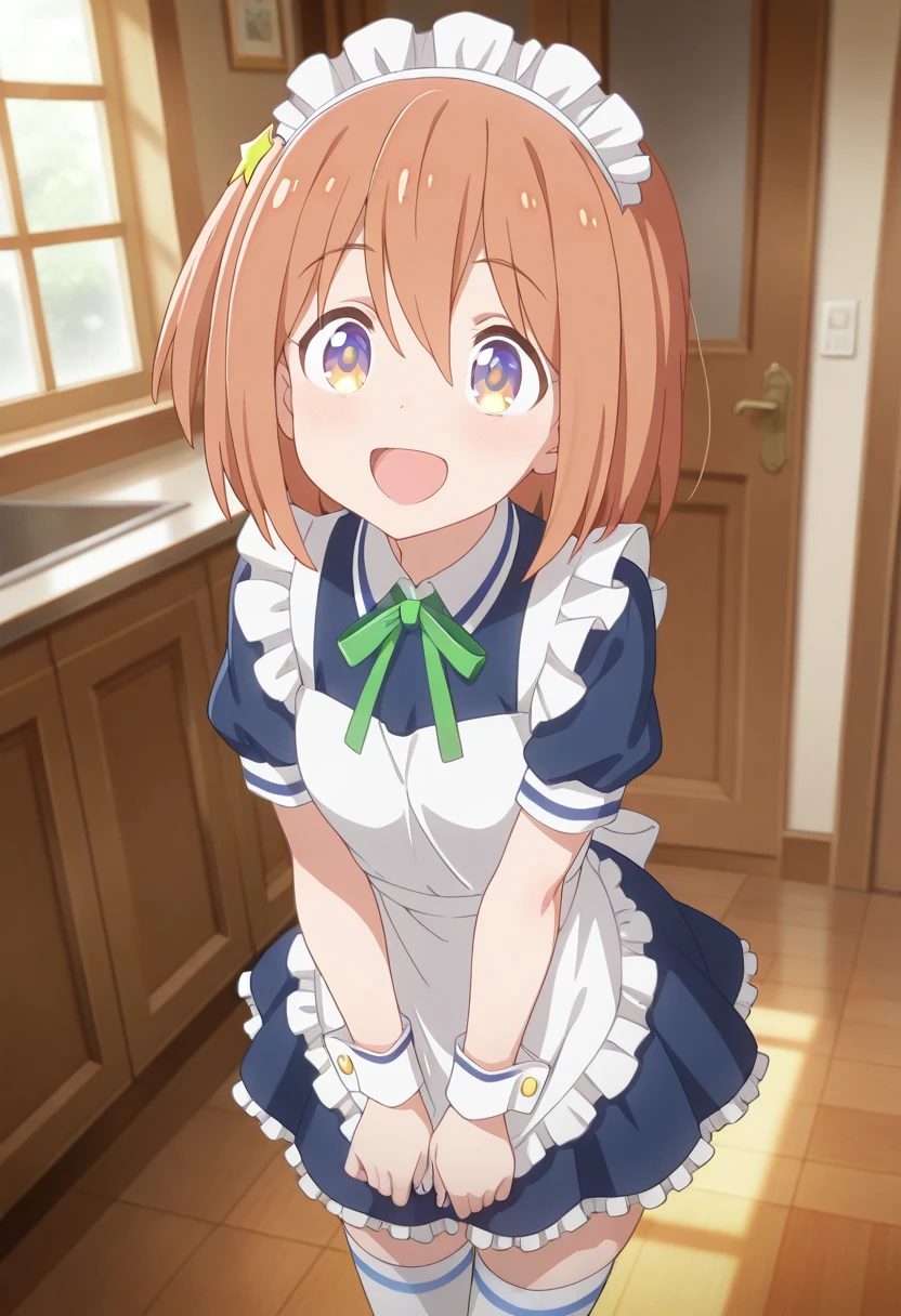 Trigger Words: konohata mira, brown hair, short hair, hair ornament, purple-yellow eyes