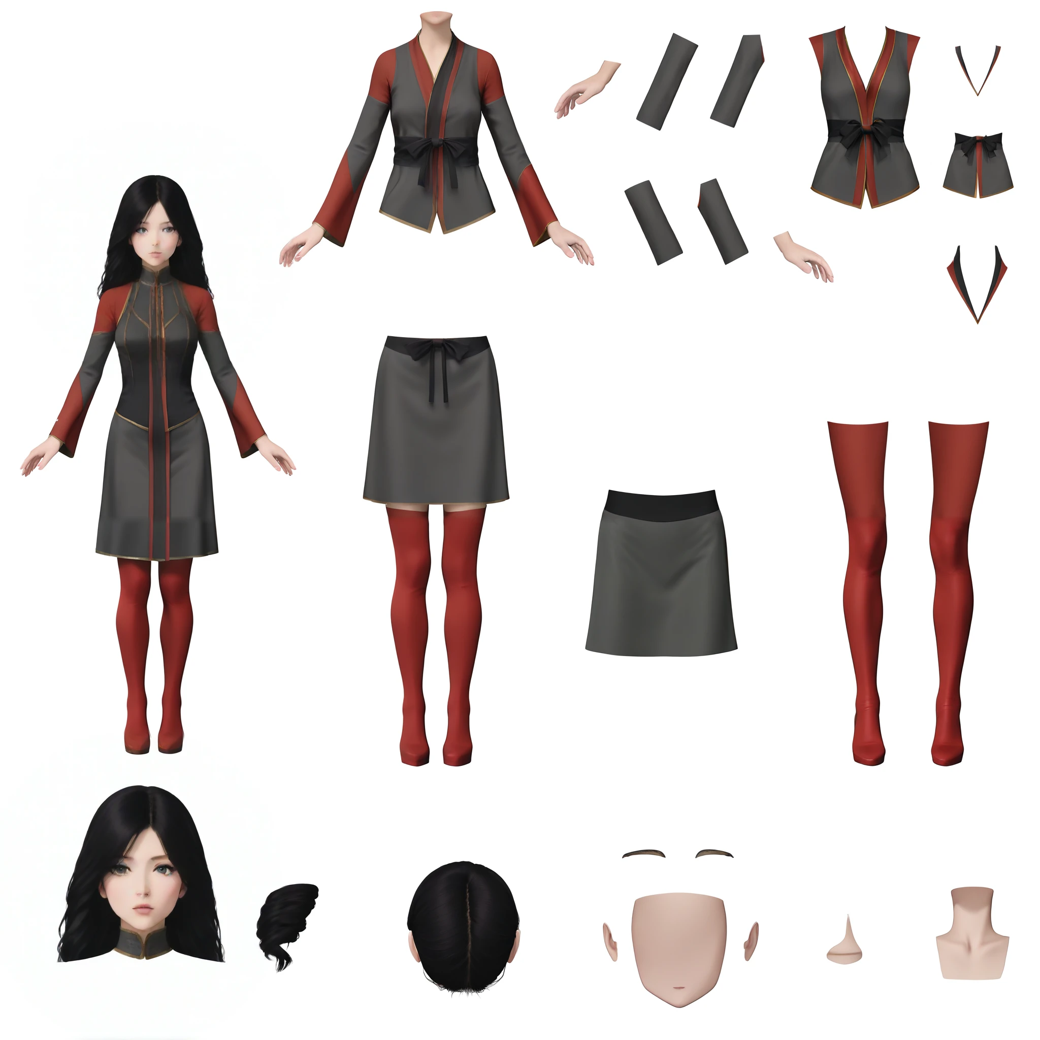 separate hand,separate feet,separate head,full body,solo,white background,simple background,guijiaoxiansheng,