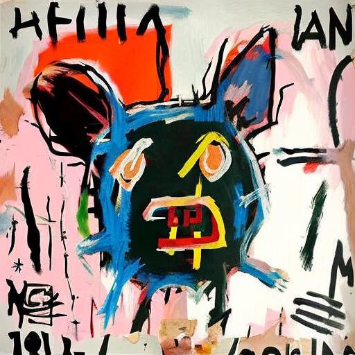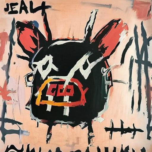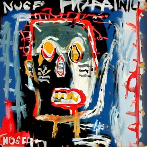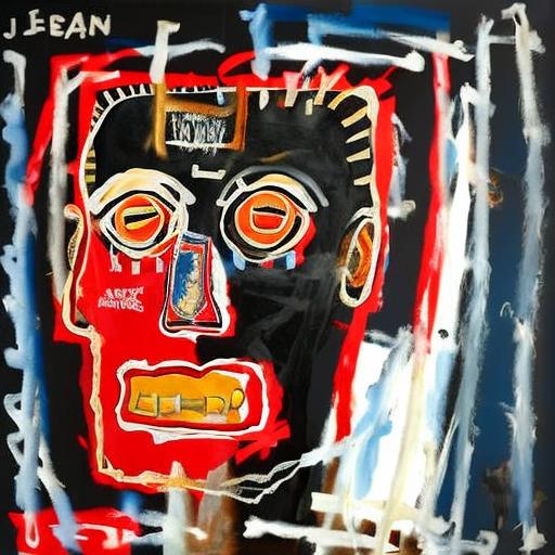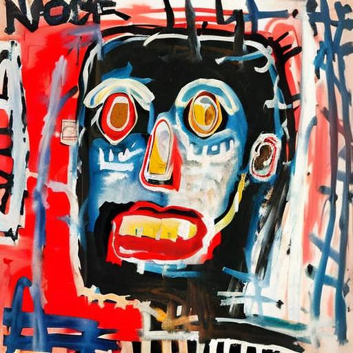 This style is based on the works of Basquiat, where he depicts abstract and deformed faces in a very colorful way.