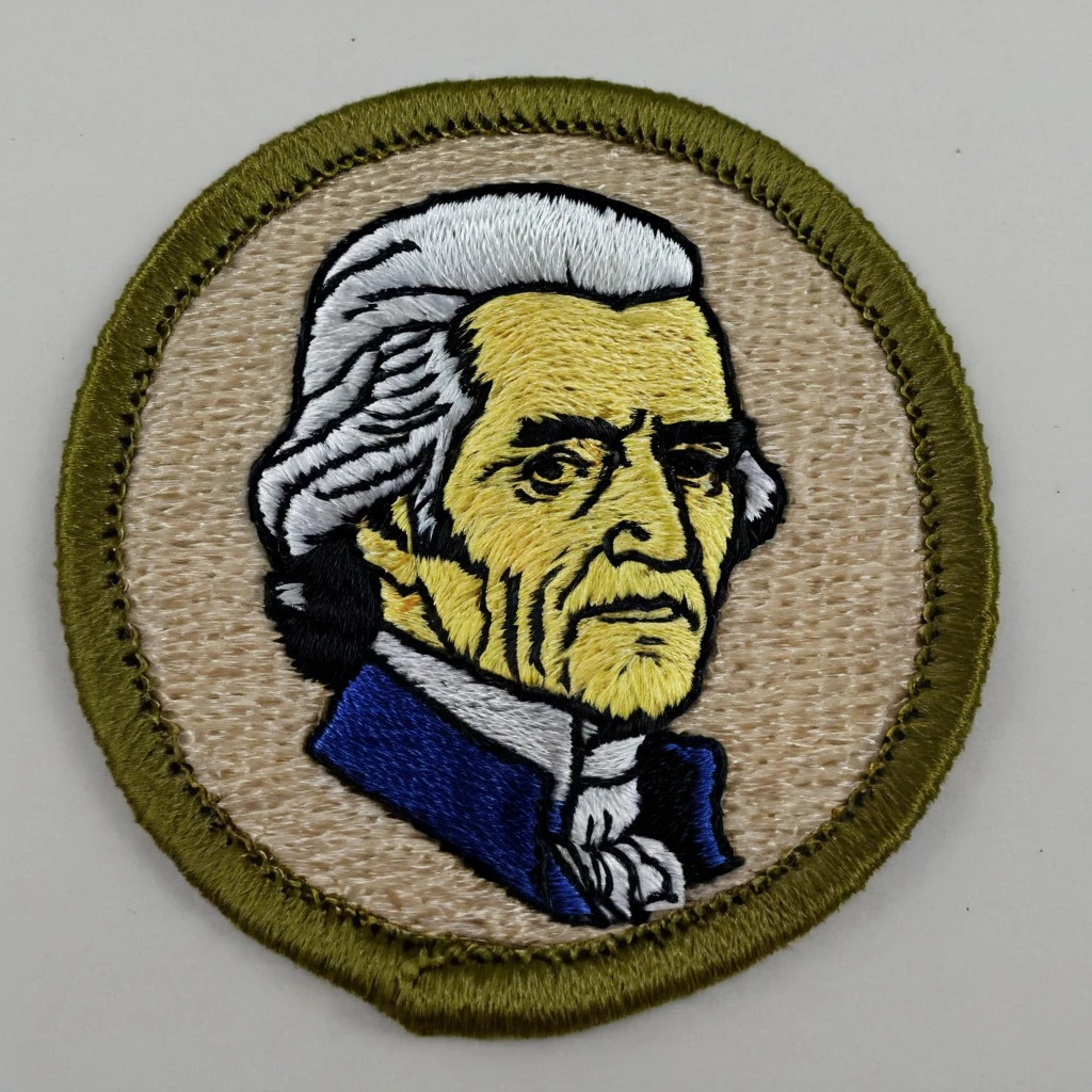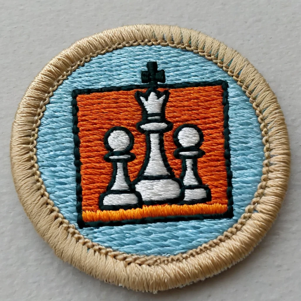 Style trained on scouting style merit badges. Circular embroidered badges.