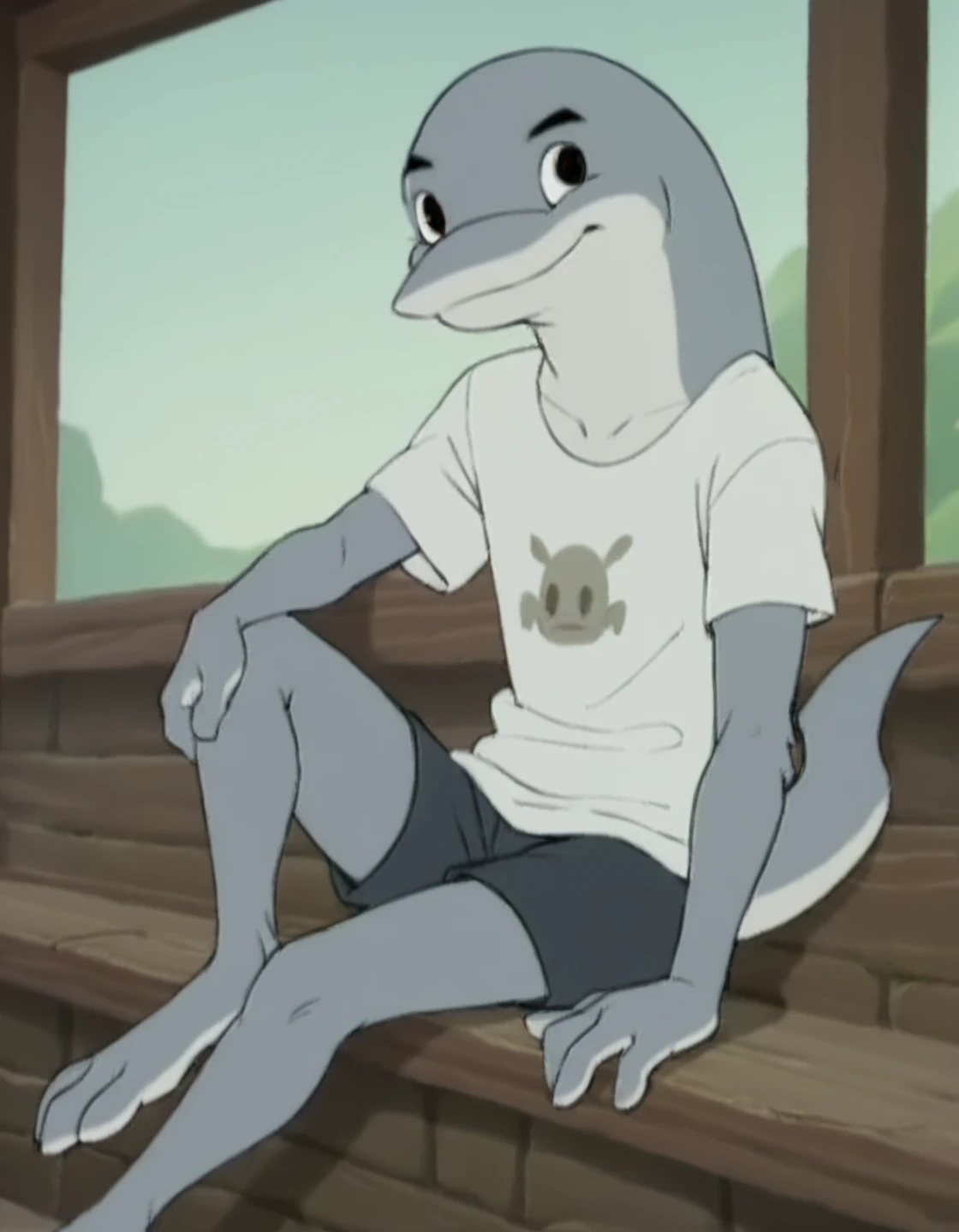 Reinforcement Tags: grey body, white body, black eyes, delphinoid, flipper, tail