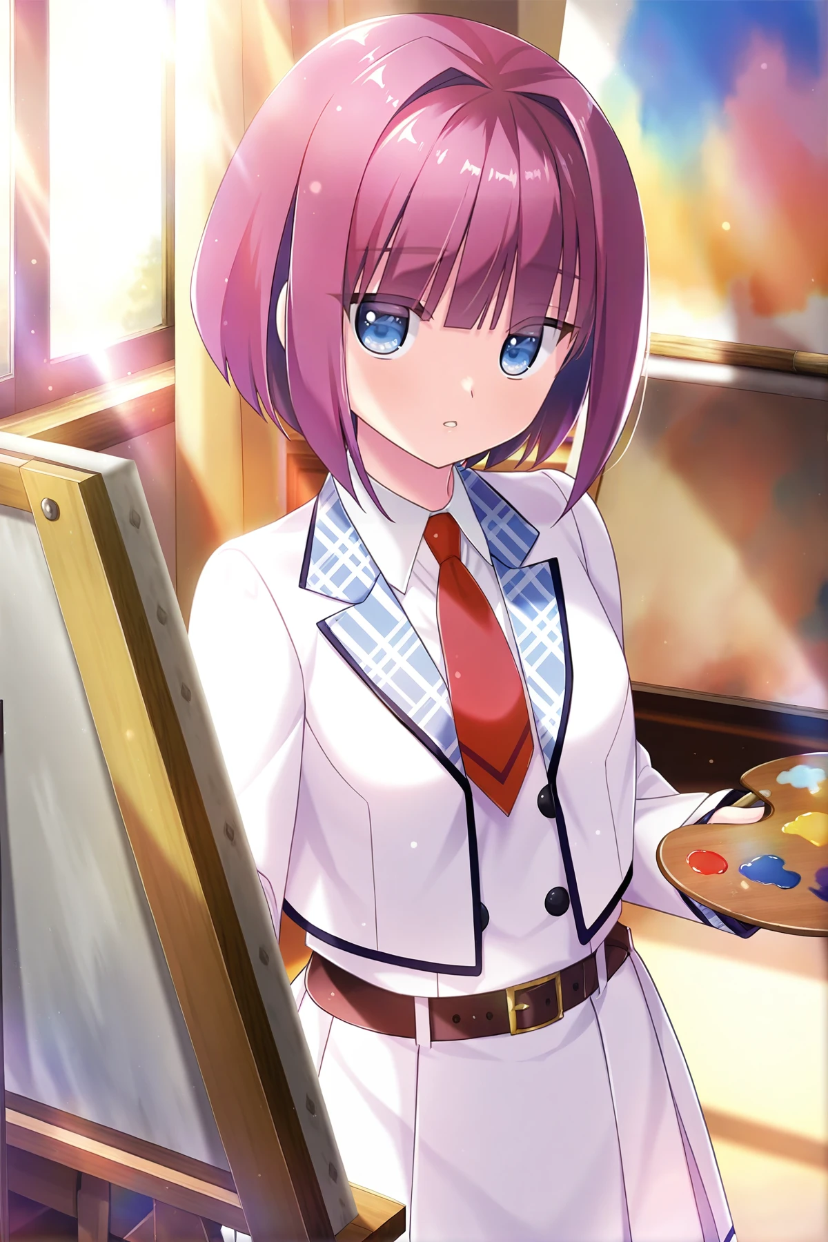 校服:nana school, purple hair, school uniform, jacket, red necktie, necktie, belt, white skirt, skirt, black socks, kneehighs, socks, boots