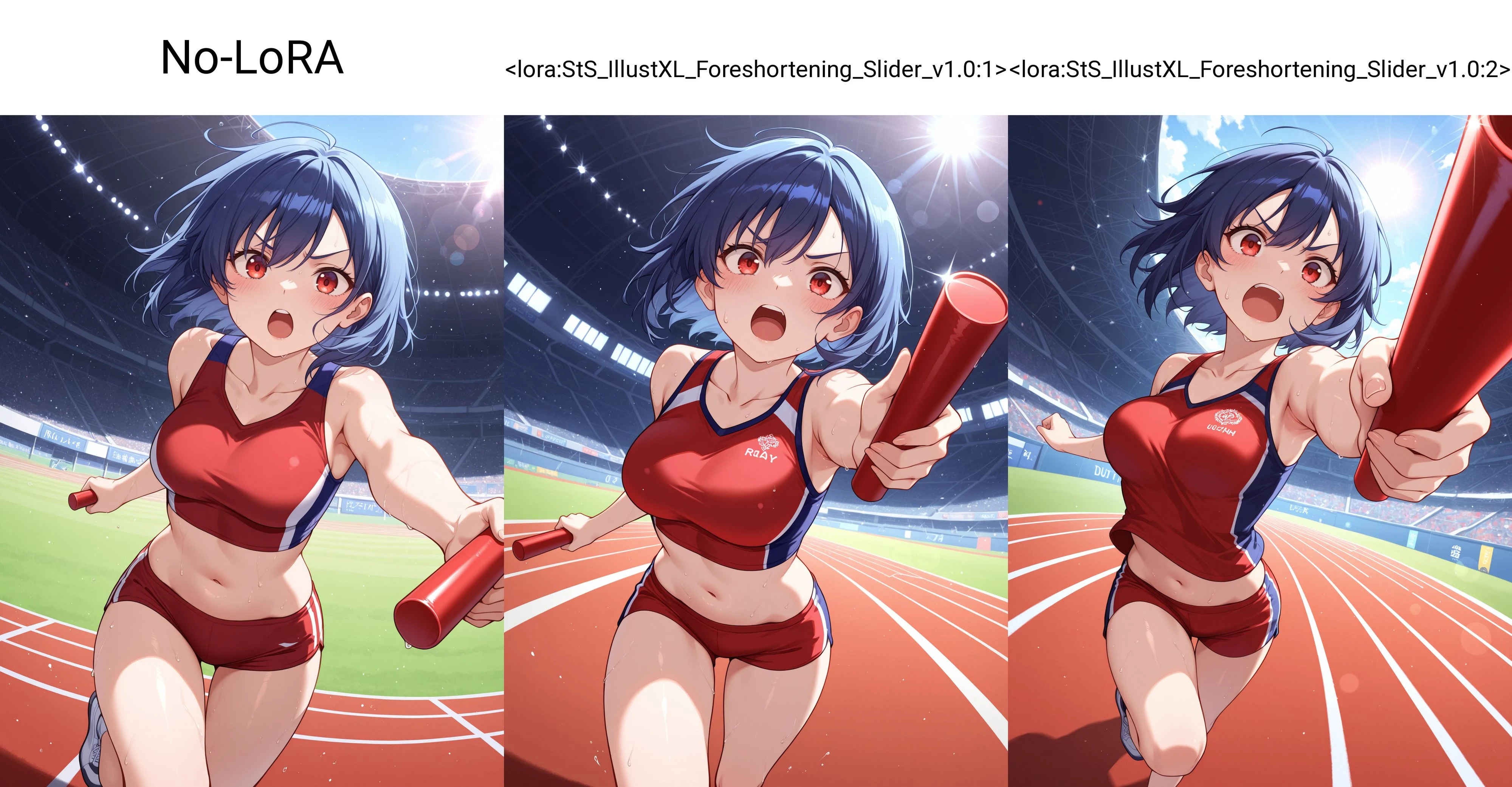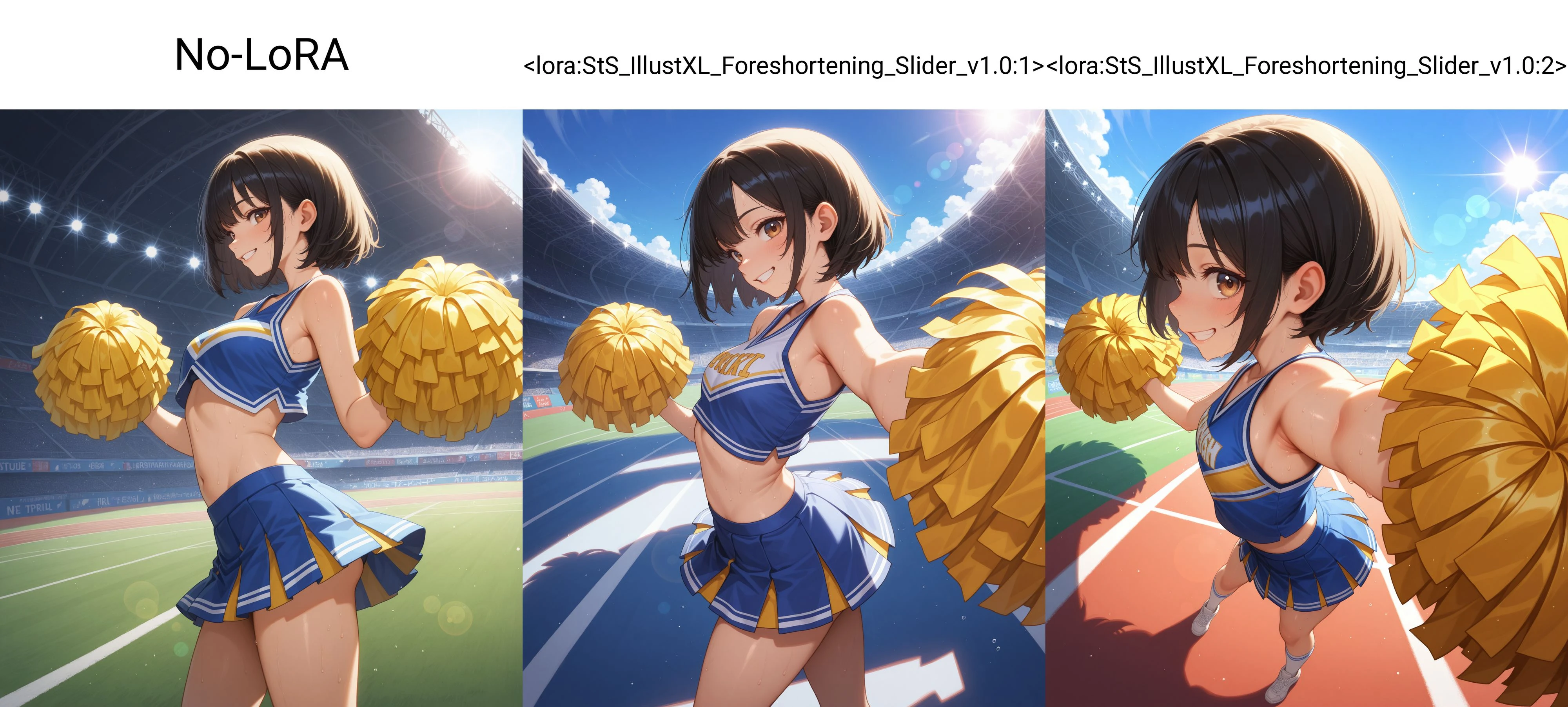 This is a slider for IllustriousXL designed to provide support and fine control of the "foreshortening" concept. This is a unipolar slider LoRA (only supports positive input weights).