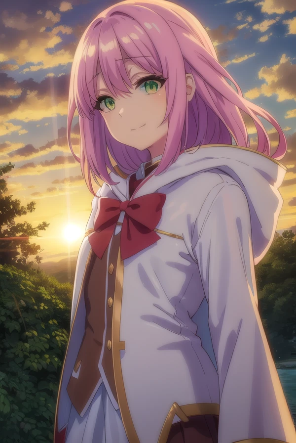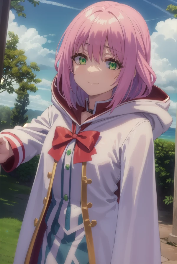 norn clatalissa jioral, long hair, hair between eyes, (green eyes:1.5), pink hair,