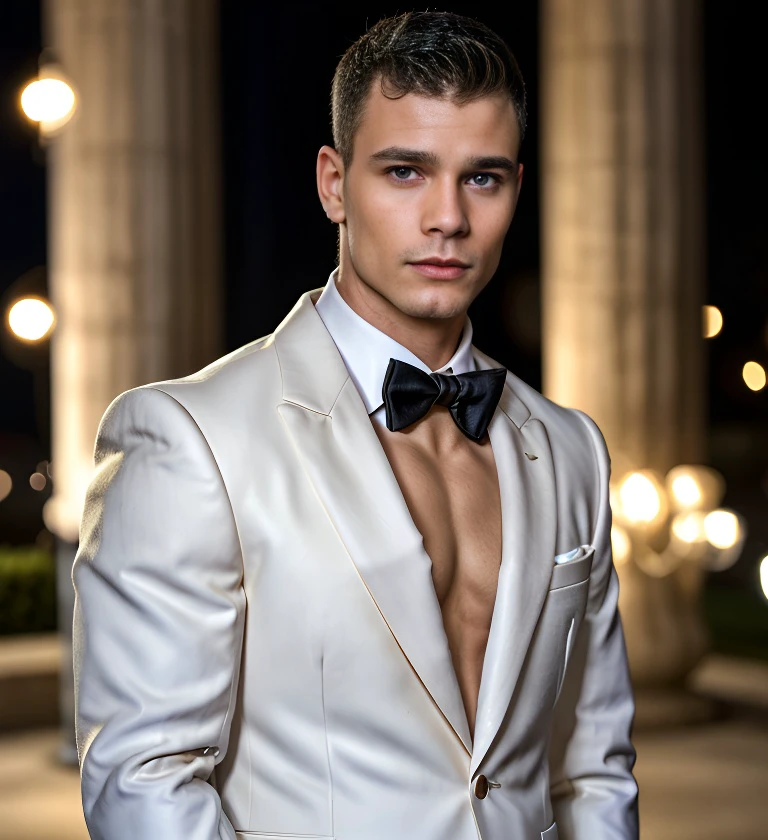 itgreekgod wearing a gold tuxedo
