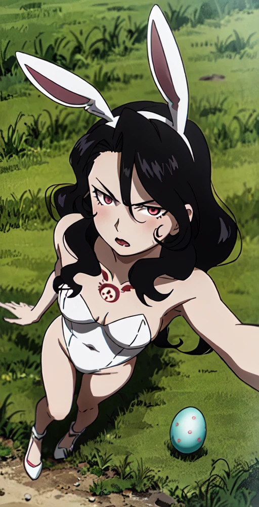 Main outfit-'black dress, cleavage, elbow gloves'