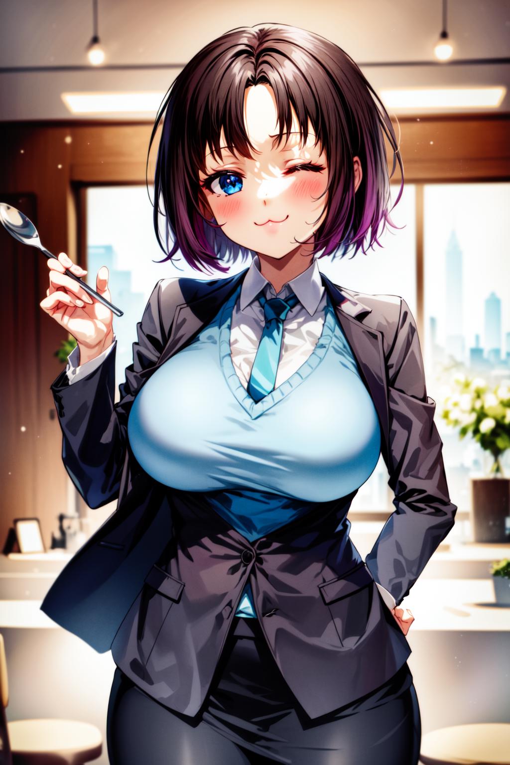 ElmaDragonMaid_NDV, 1girl, multicolored hair, black hair, large breasts, short hair, single horn, blue eyes, black leotard, kimono, scarf, off shoulderElmaDragonMaid_NDV, 1girl, multicolored hair, black hair, large breasts, short hair, blue eyes, bussines suit, jacket, tie, skirt, shirtBest weight: 0.6-0.8