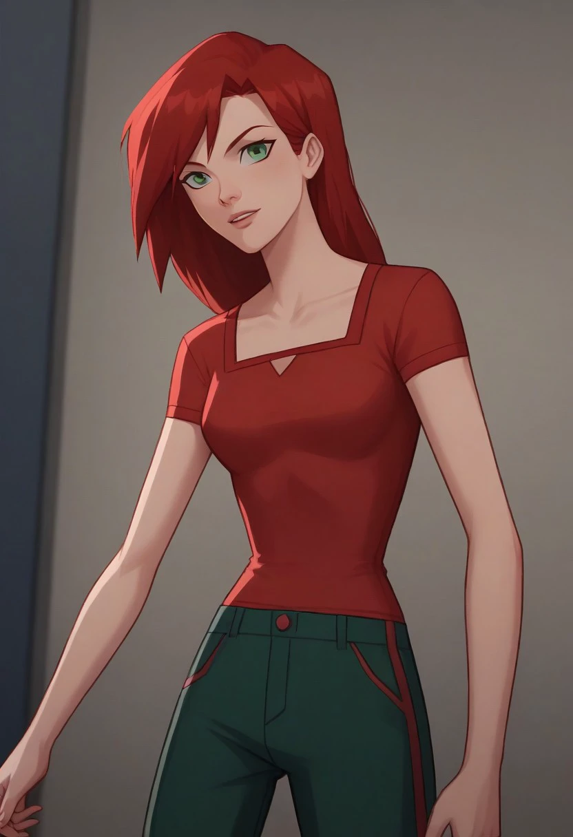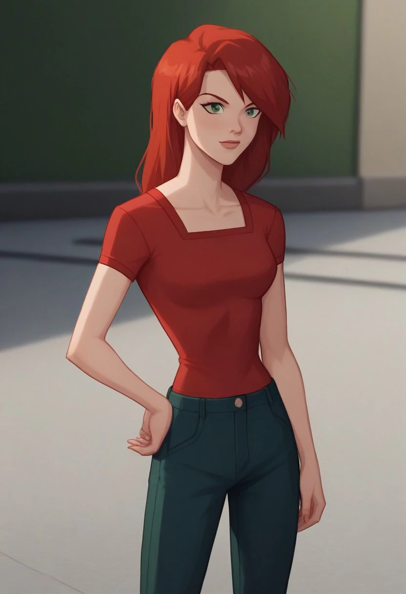 green eyes, red hair