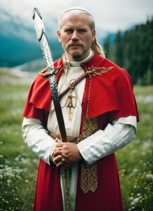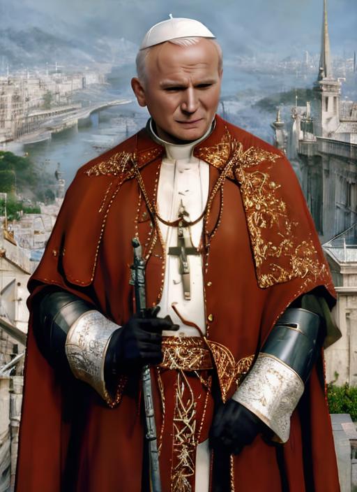 Model created to make beautiful paintings for my grandma! Made with 53 photos of pope. Trained with rev animated v121.