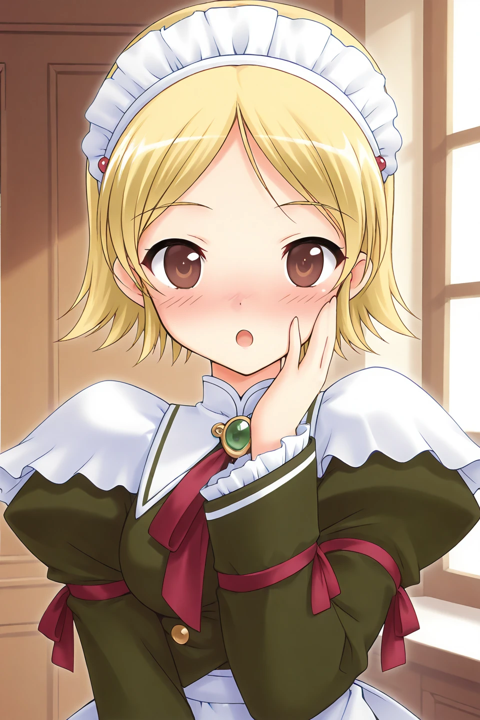 blush, hand on own cheek, looking at viewer, open mouth, :o, parted lips, disappointed