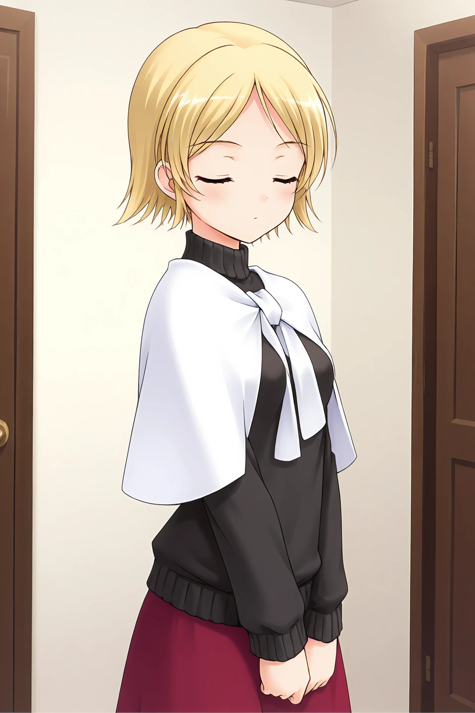 blush, :<, closed eyes, closed mouth, expressionless, facing viewer