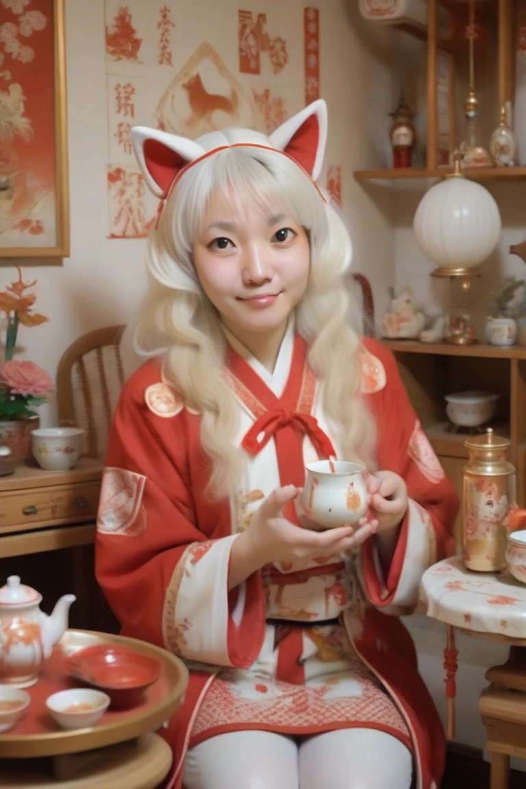 Helpful Fox Senko-san SDXL - realistic style of the anime character. Sample prompt - A cheerful photo realistic woman with fox ears( fox spirit) with golden fur and white hair, wearing a traditional red and white shrine maiden outfit, lovingly serving tea in a cozy Japanese living room. Gentle expression, warm lighting, soft pastel color palette, peaceful atmosphere, inspired by “The Helpful Fox Senko-san. - use strength 0.4-0.6