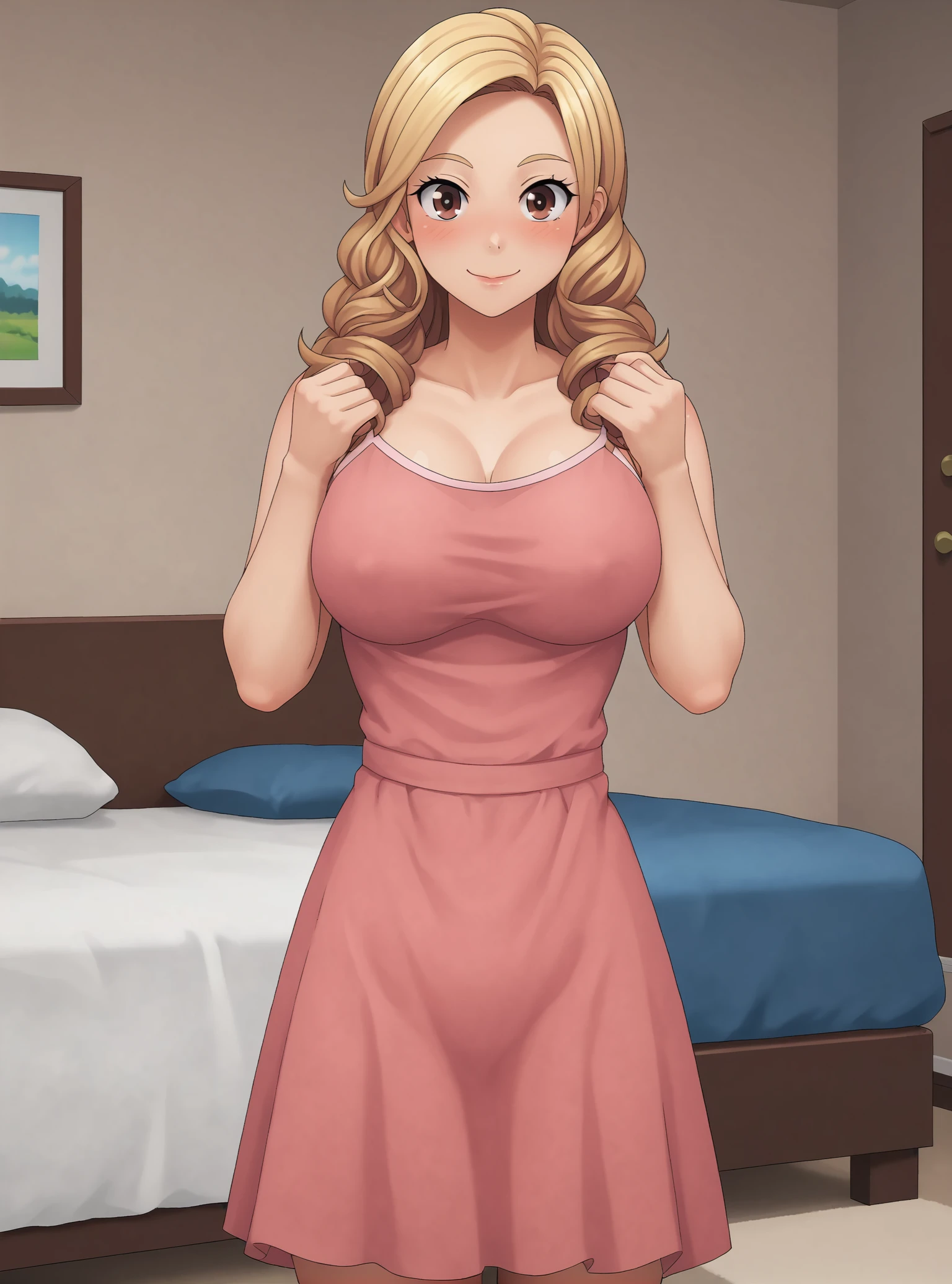 ADD: Bree, blonde hair, brown eyes, blush, curly hair