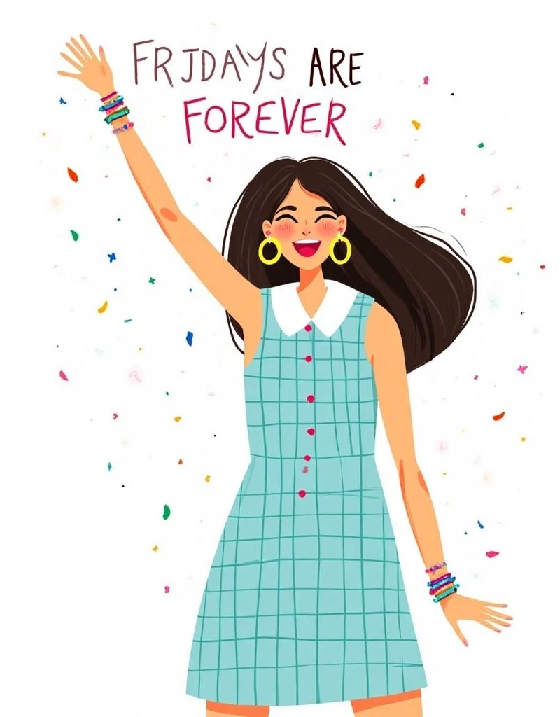 Cartoon - style illustration, a woman in a light blue vest, raising her hand, simple and lively character design.