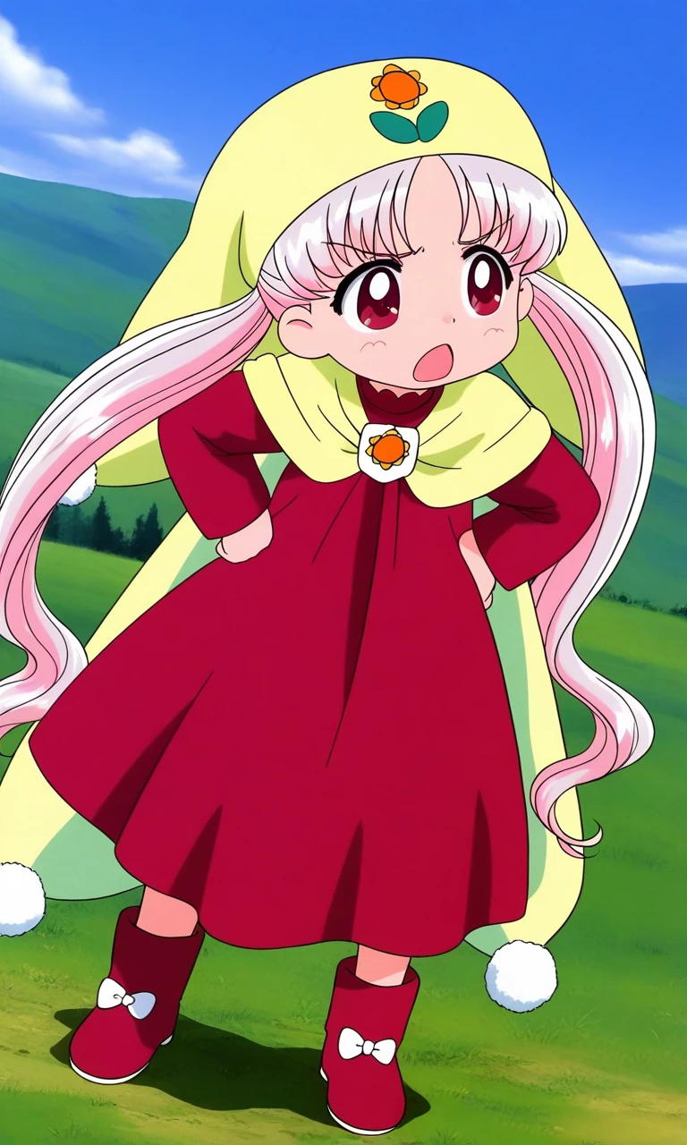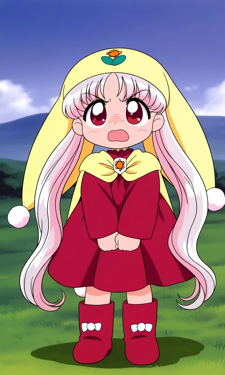 Silver_Oujo(Crayon_Oukoku), 1girl, solo, long hair, white hair, pink hair, red eyes,