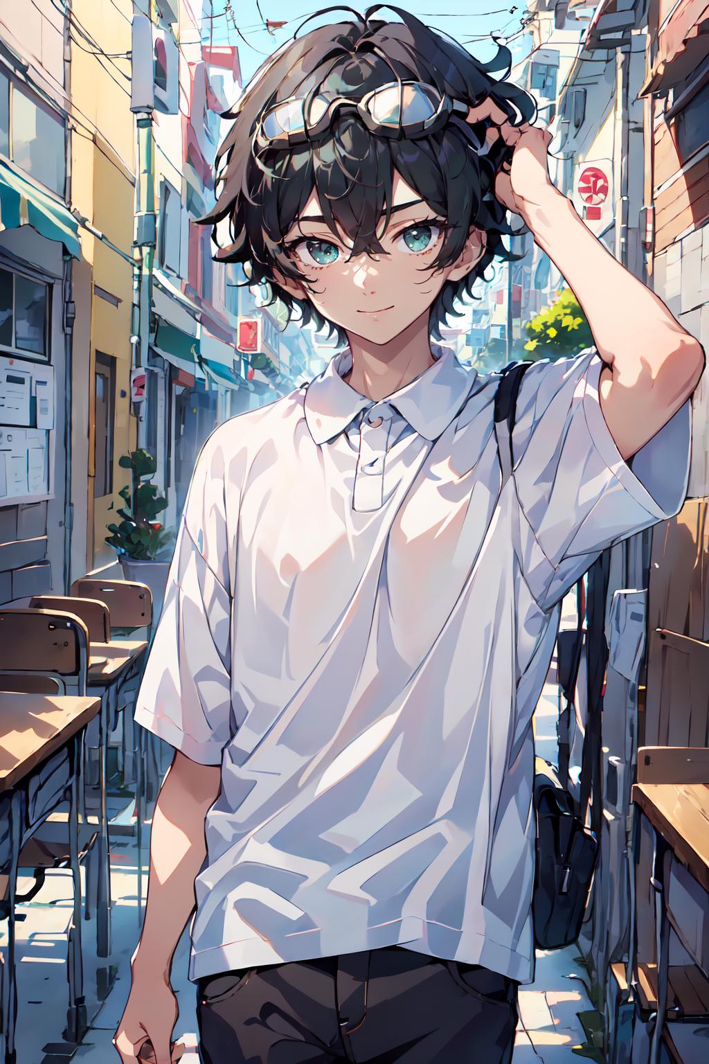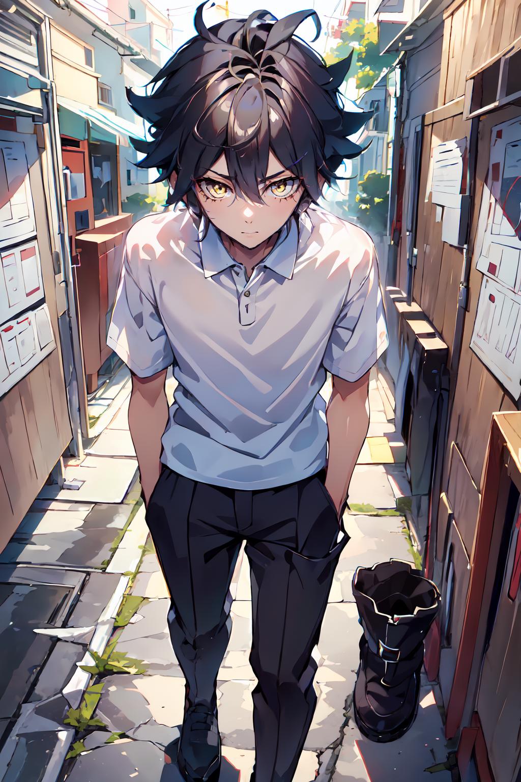 Variant 1: black slux pants, lanyard, white shirt (short sleeves).