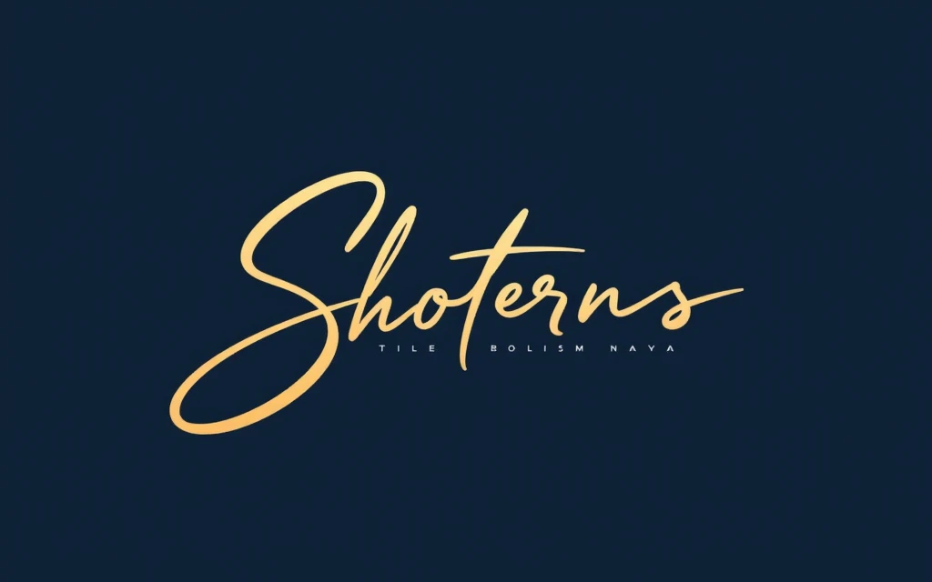 Prompt: Handwritten signature. Name: "Shoterns". The signature is elegantly written in a gold hue on a dark blue background. The design features smooth, flowing lines, conveying a sense of elegance and sophistication.