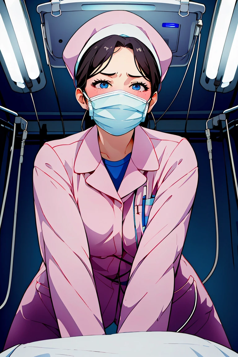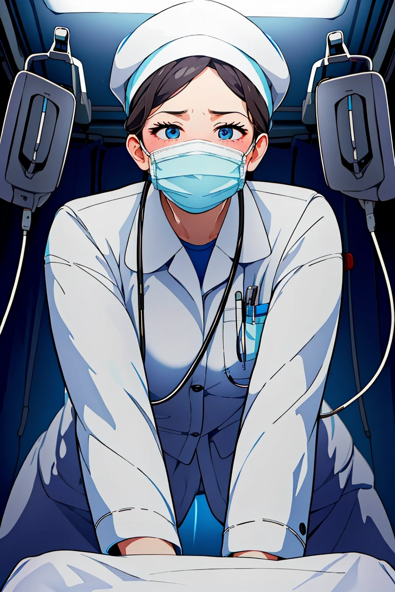 doctor_cpr_alt, 1girl,solo, surgical mask, pov, looking at viewer, blush, hat,