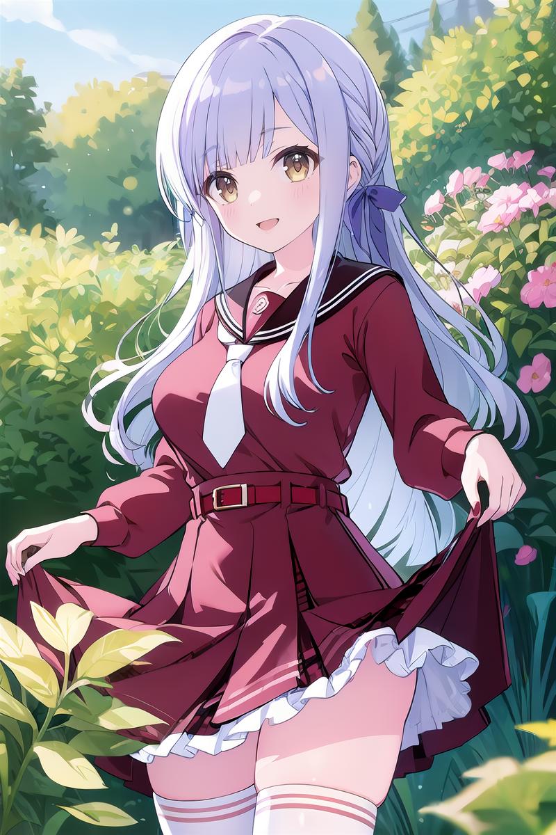 outfit:kanbauniform,high-waist skirt,belt,thighhighs