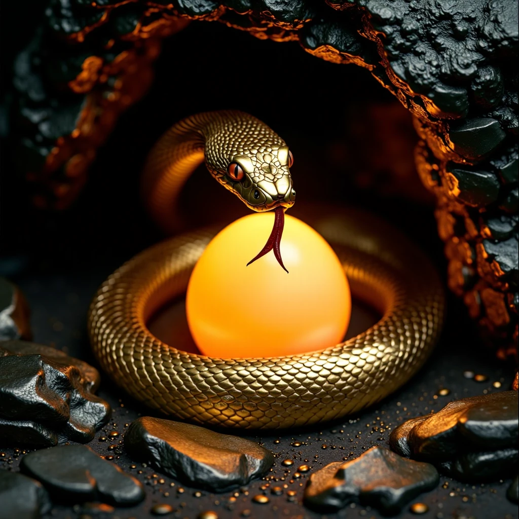 Combine with descriptive prompts like "a coiled golden snake on a velvet cloth" for refined results.