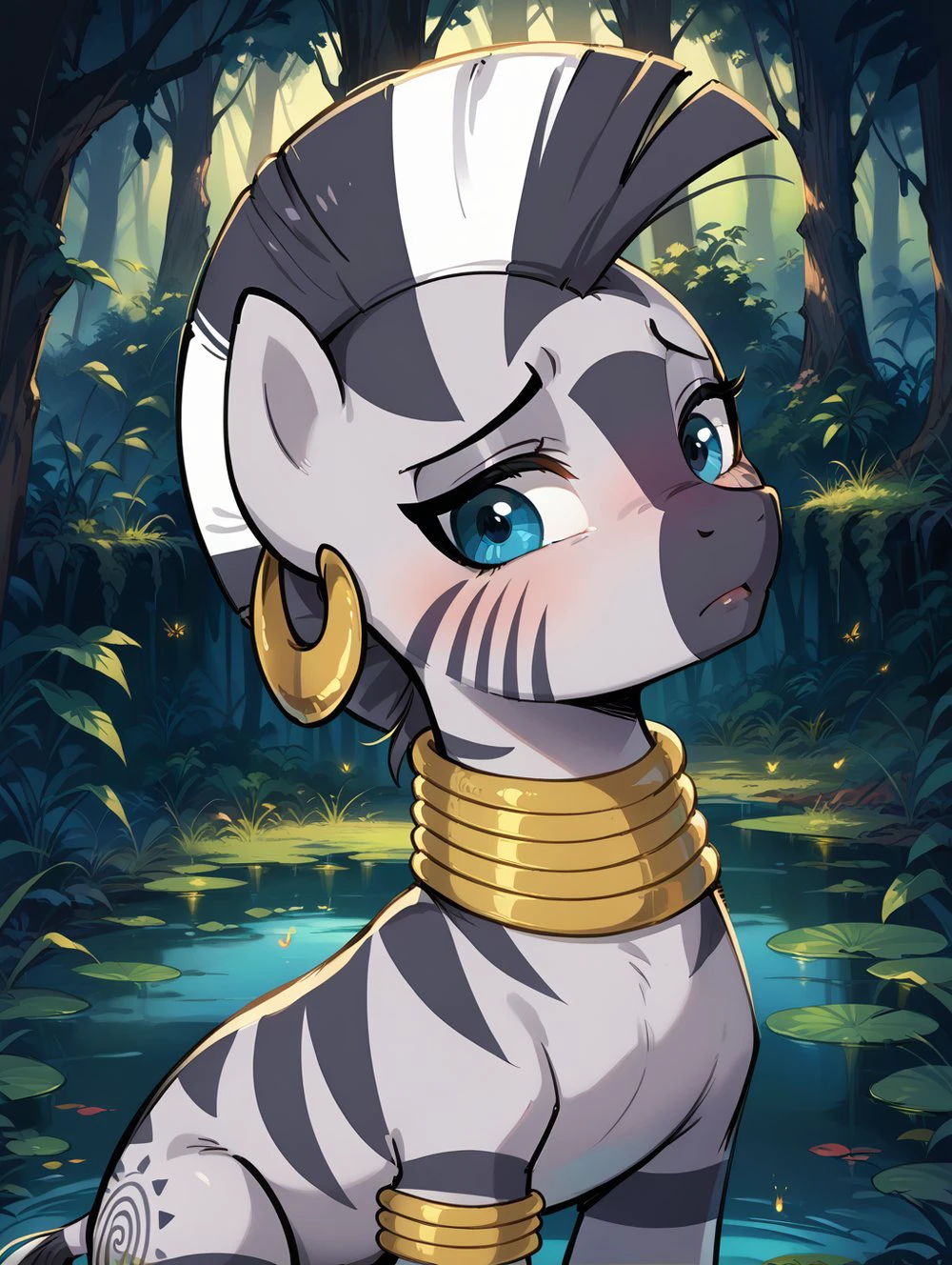 Zecora,non-human, gold jewelry and earrings,animal, blue eyes,necklace, facial marking,face and body paint,zebra, quadruped