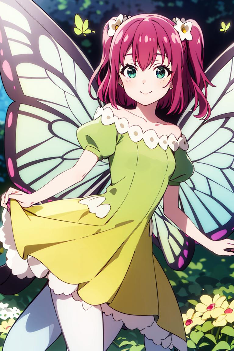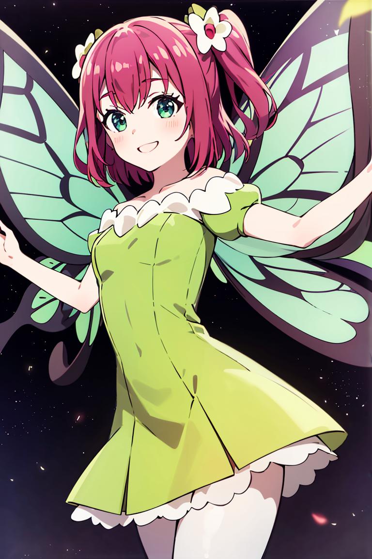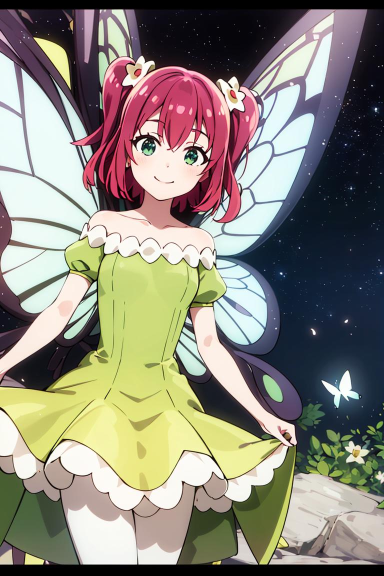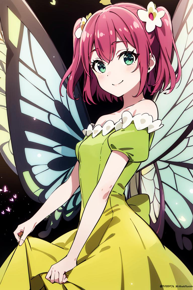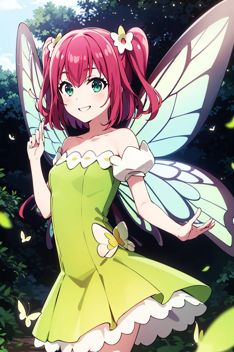 Extra prompts: green dress, yellow dress, butterfly wings, fairy,