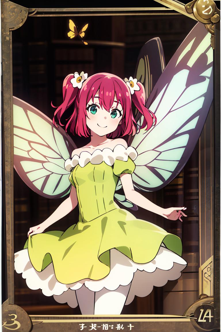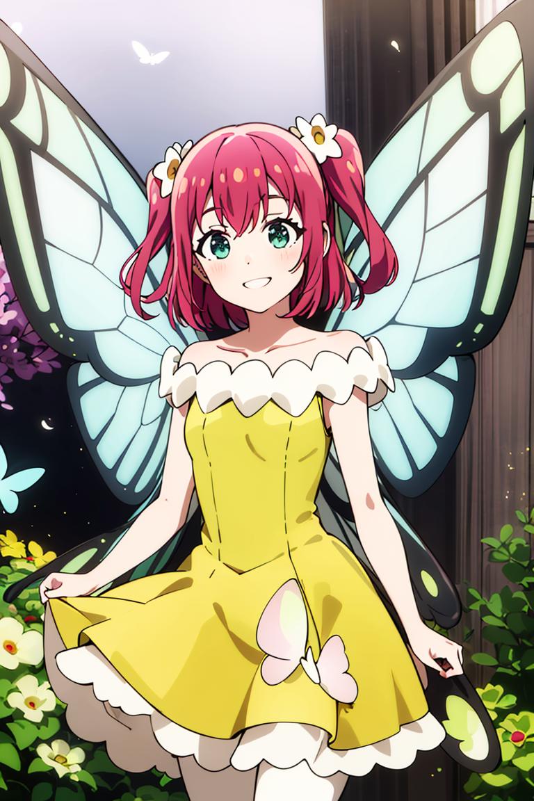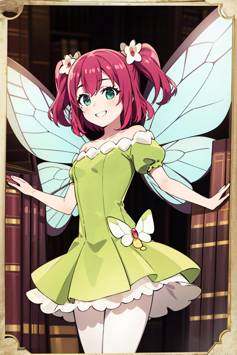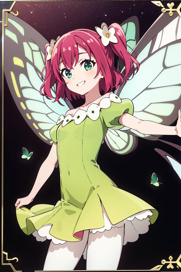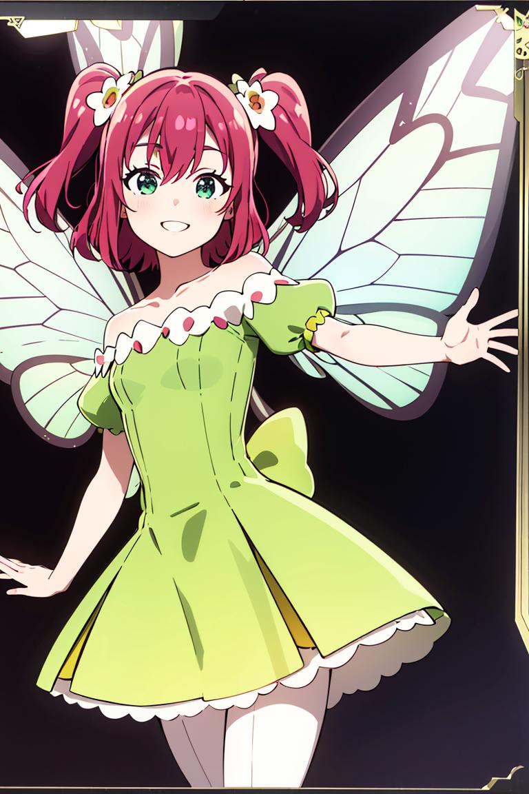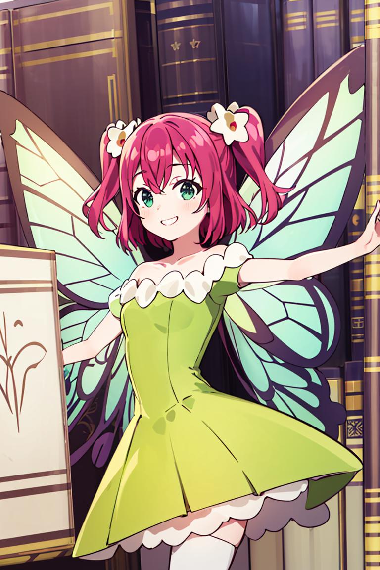 Extra prompts: green dress, yellow dress, butterfly wings, fairy,