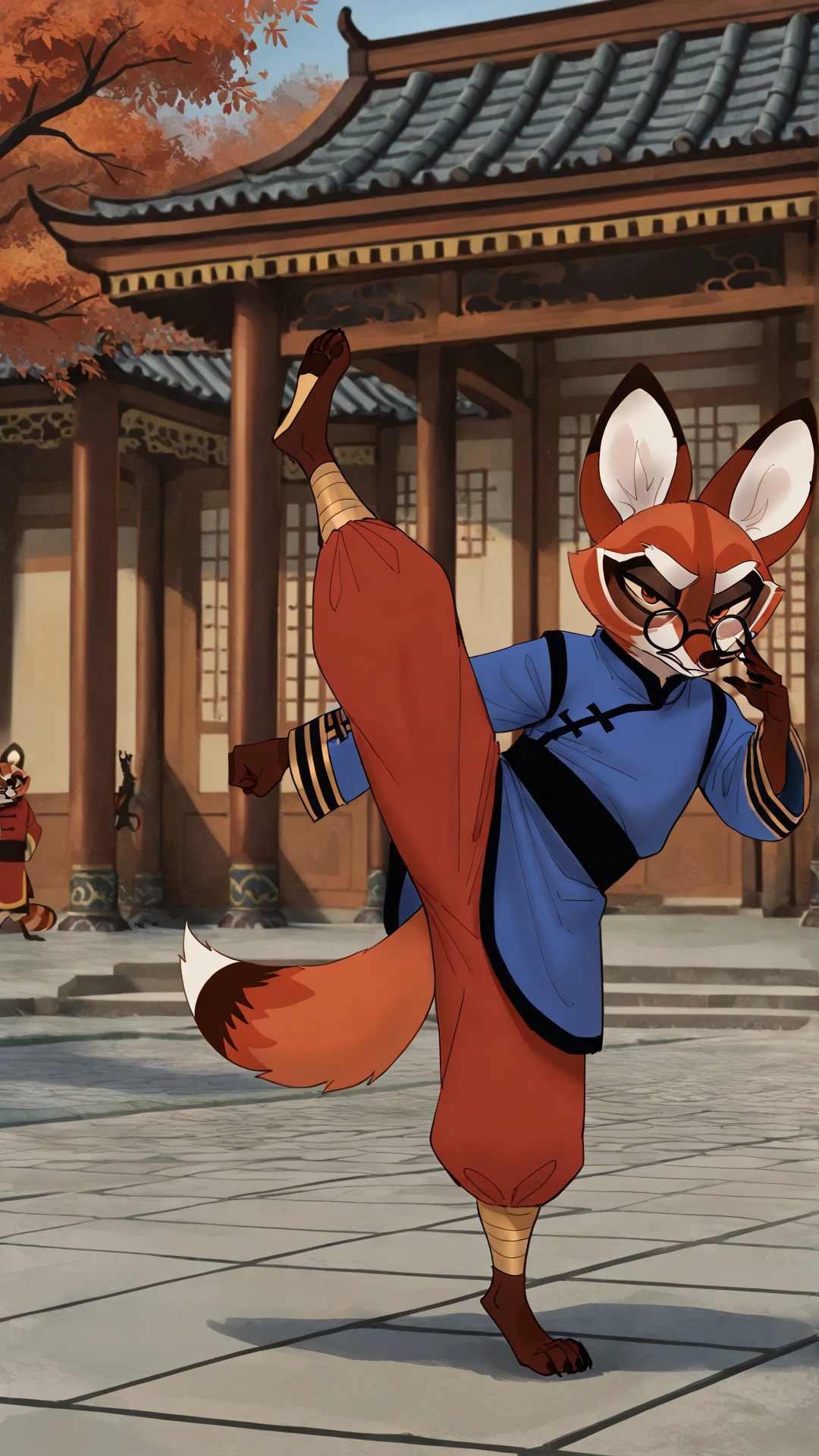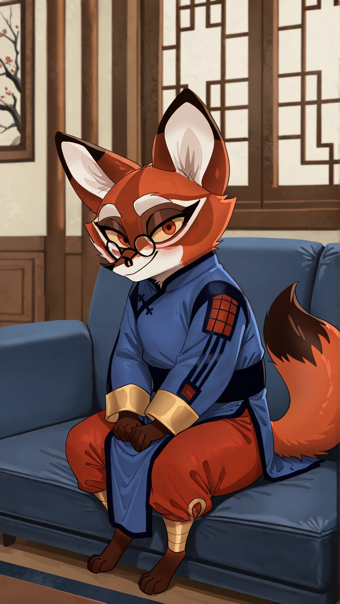 junjiekfp, junjie_blue_outfit, furry male, animal ears, glasses, tail, chinese clothes,