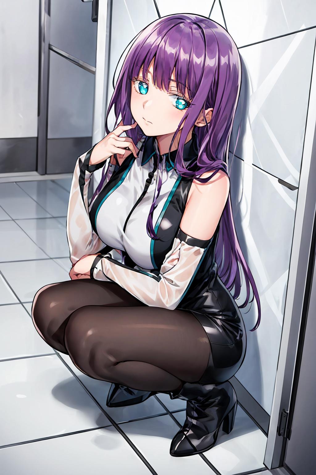 For her standard outfit: dress, detached sleeves, black pantyhose.