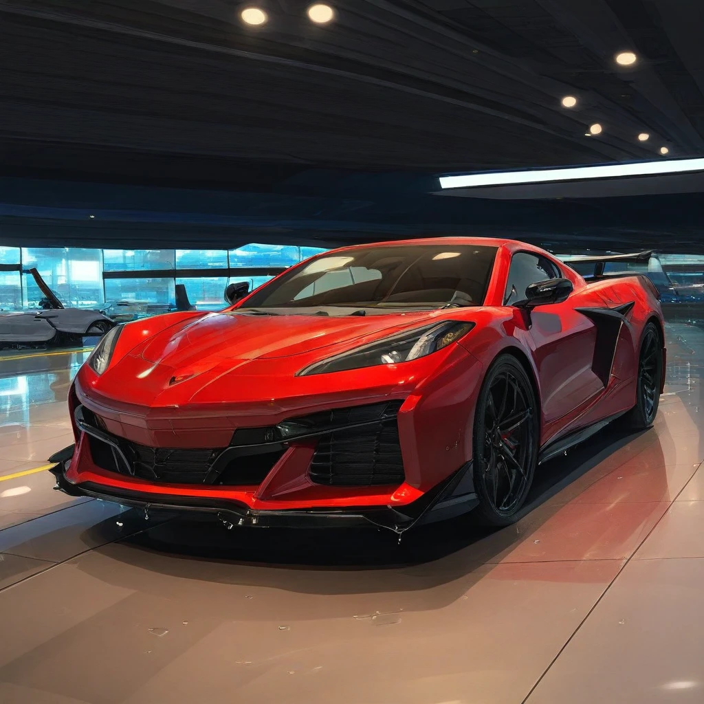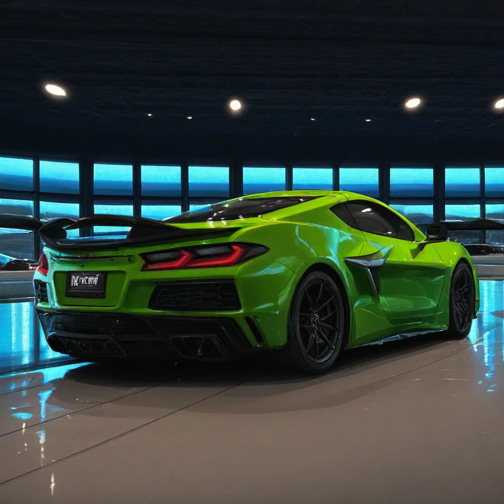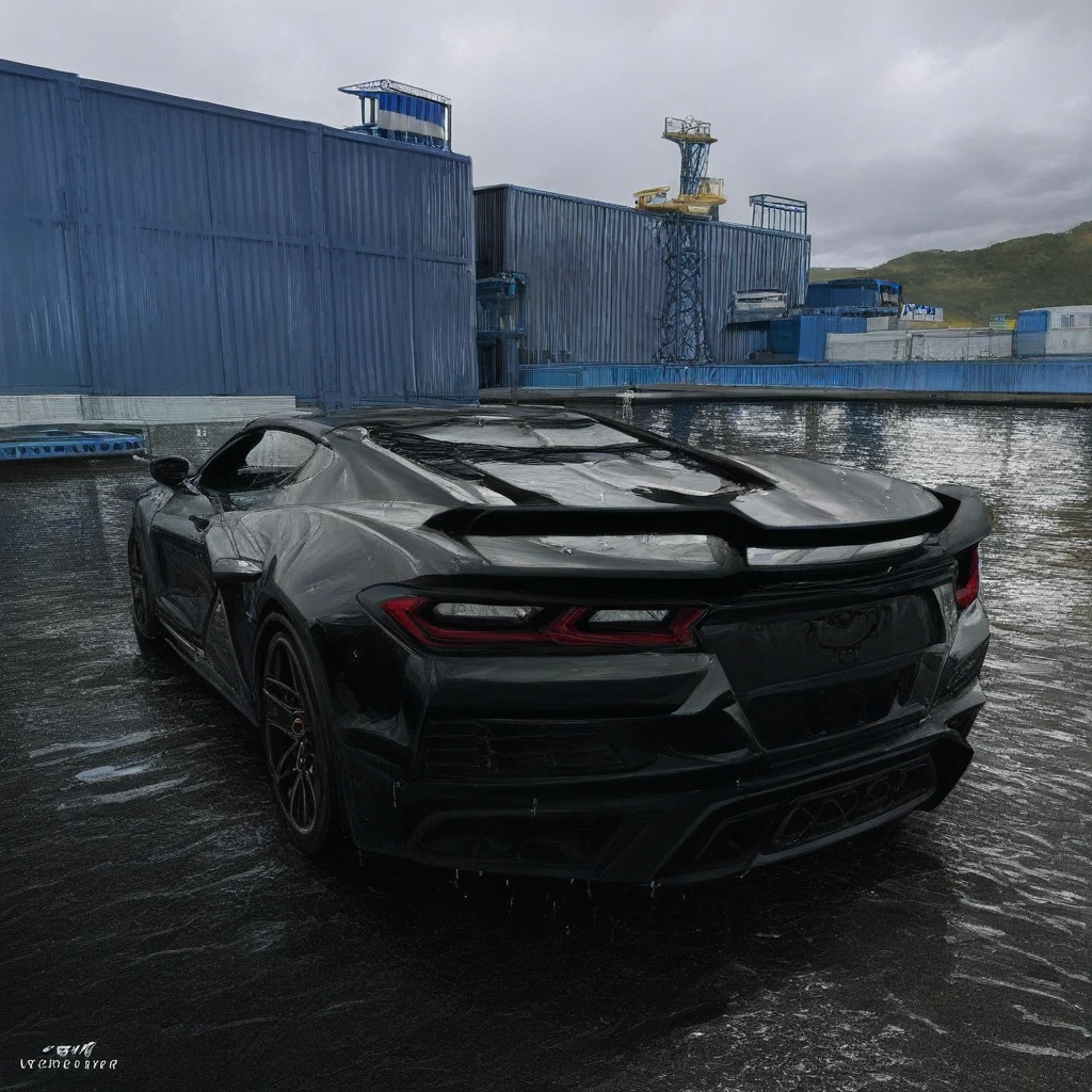 - `masterpiece, best quality, newest, absurdres, highres, 2025vette, matte black, parked under neon lights, wet pavement, night, cinematic lighting, black_wheels, glowing reflections, side view`