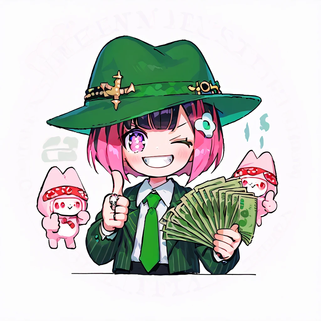 black hair, pink hair, multicolored hair, symbol-shaped pupils