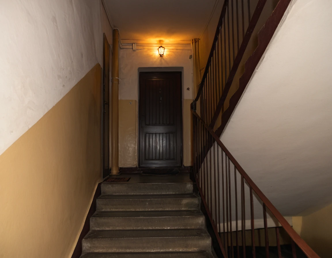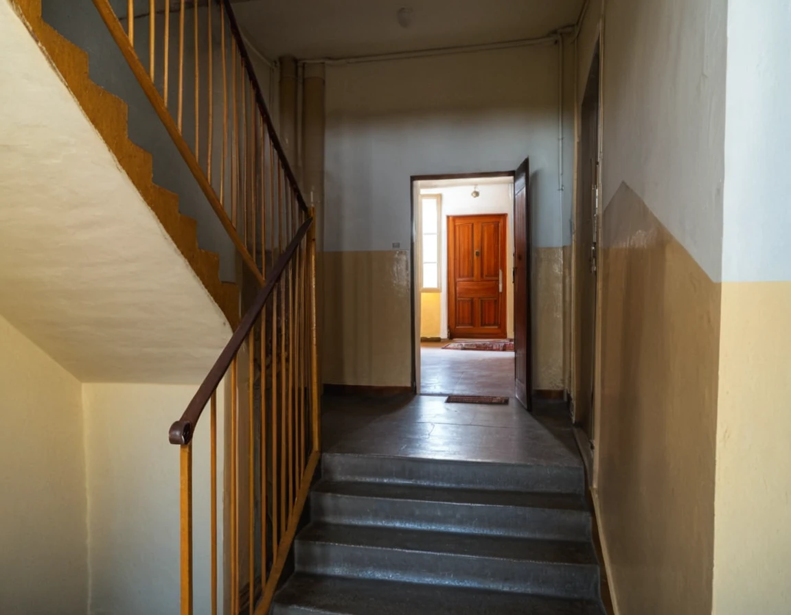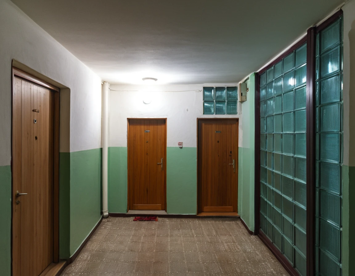 Polish/eastern Europe concrete residential (block of flats) interiors - corridors, stairs, old entry doors, 70s, 80s, 90s mood