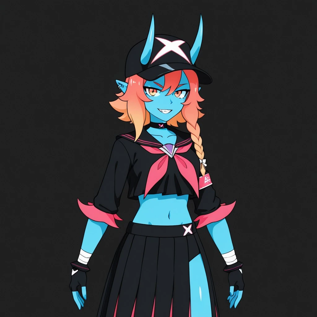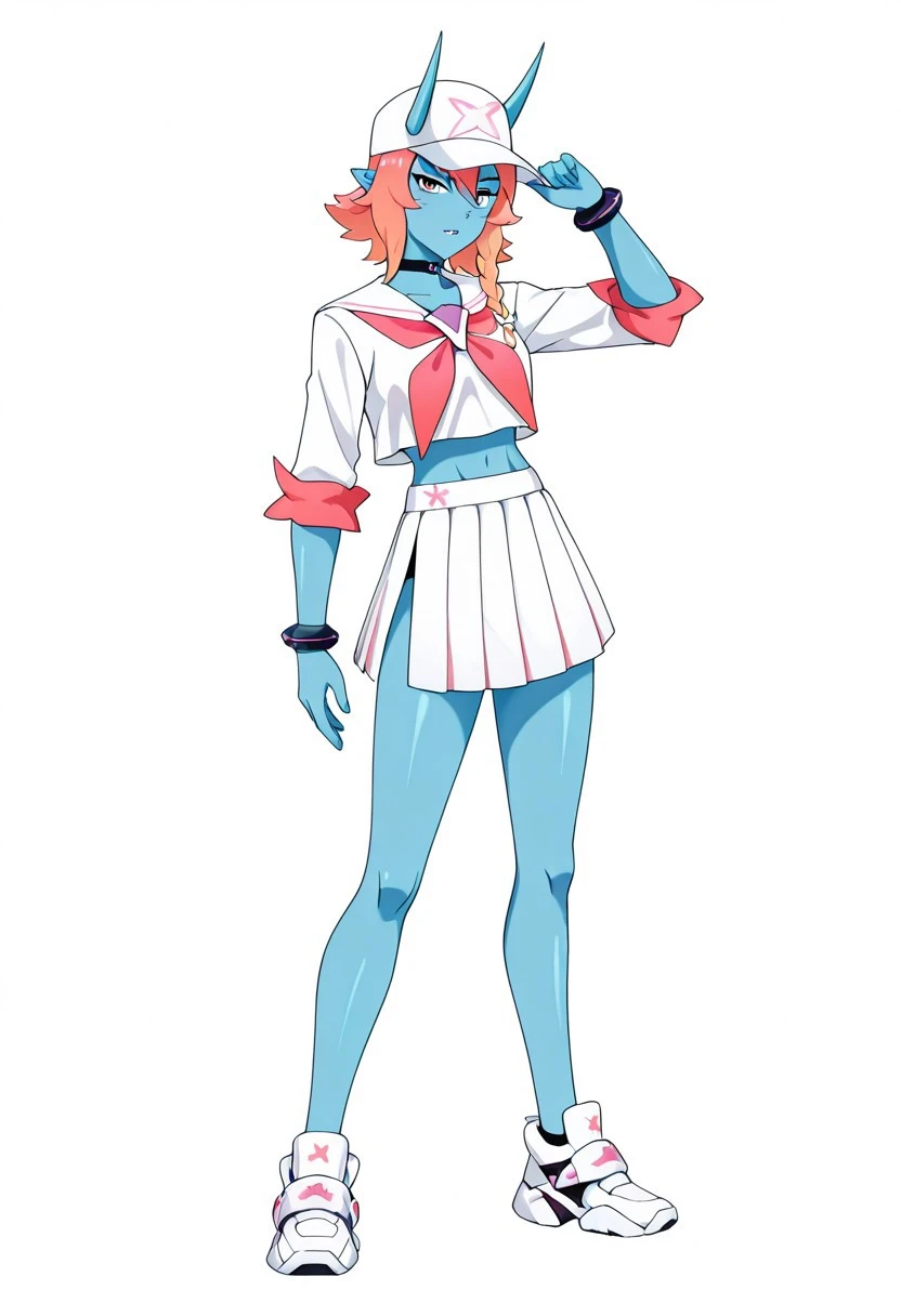 mako, mako outfit, blue skin, two horns