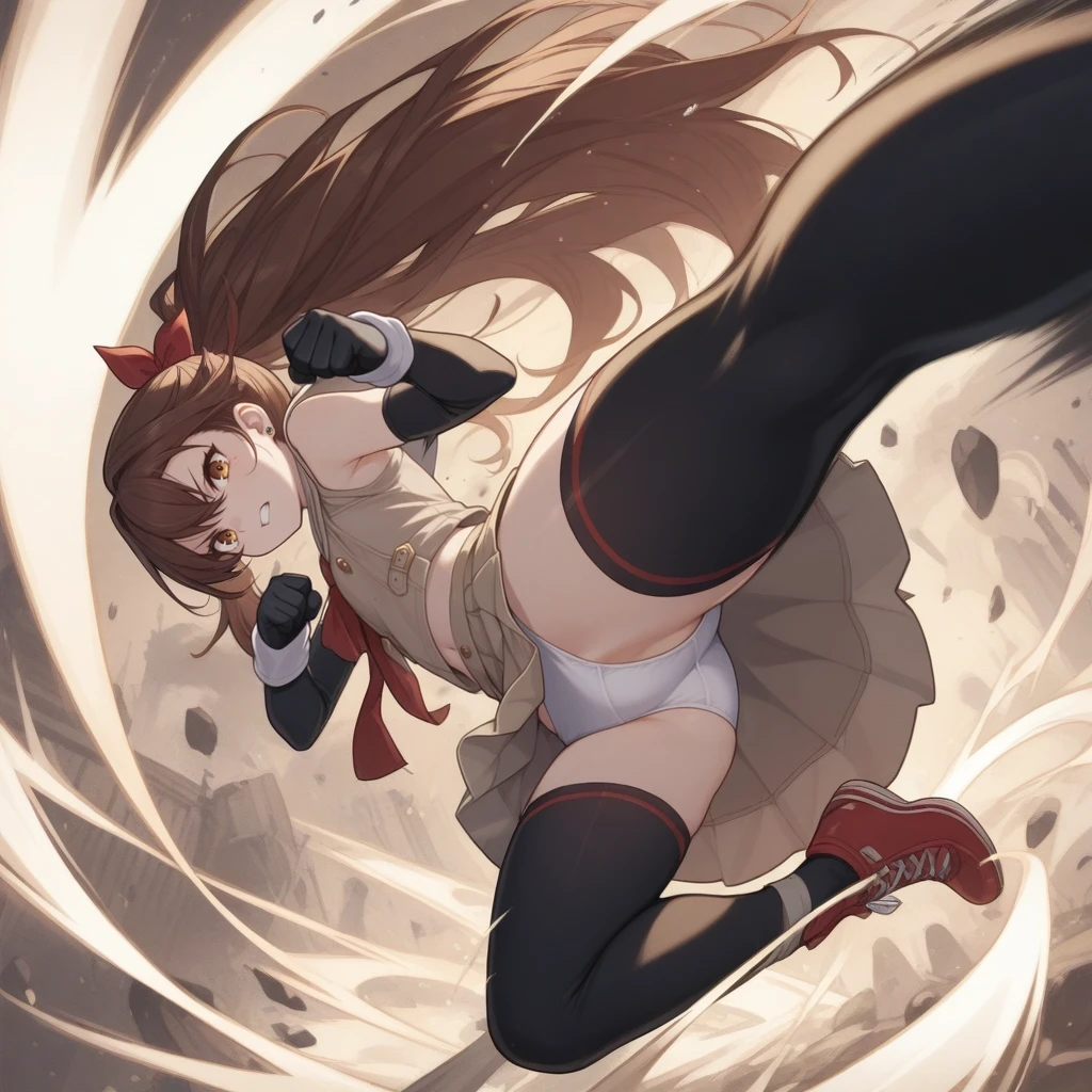 Use a detailed description - to get what you need! Tag: eps, solo, looking_at_viewer, short_hair, shirt, 1boy, standing, white_hair, grey_hair, male_focus, short_sleeves, outdoors, teeth, pants, dark_skin, black_footwear, black_shirt, grey_eyes, black_pants, dark-skinned_male, clenched_teeth, clenched_hand, motion_blur, undercut, kicking, debris, high_kick
