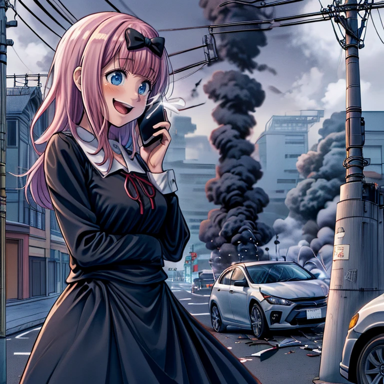 Due to a request for generating of this scene image, I have applied the LoRa effect to a scene where someone causes a car accident and then tries to shift the responsibility over the phone with a casual 'please take care of it.' Testing confirmed that this works well with any desired character using LoRa. The strength is recommended to be set at 0.5 or higher.