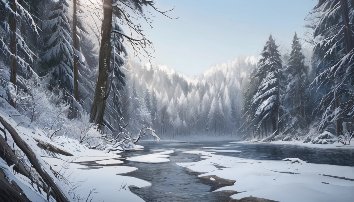 提升雪天森林场景质量,在有河流和水源的情况下,能表现浮冰的质感。