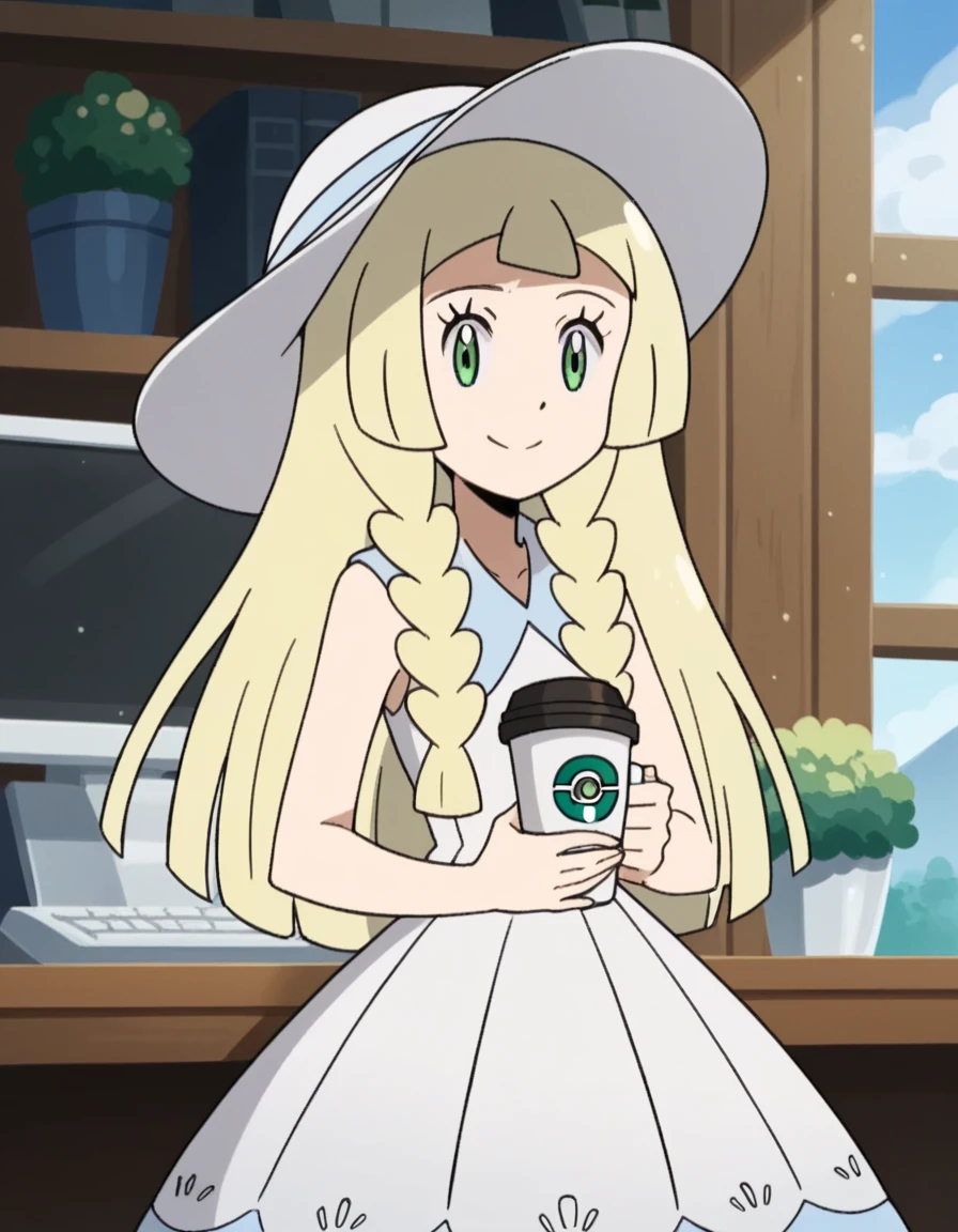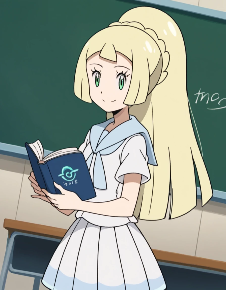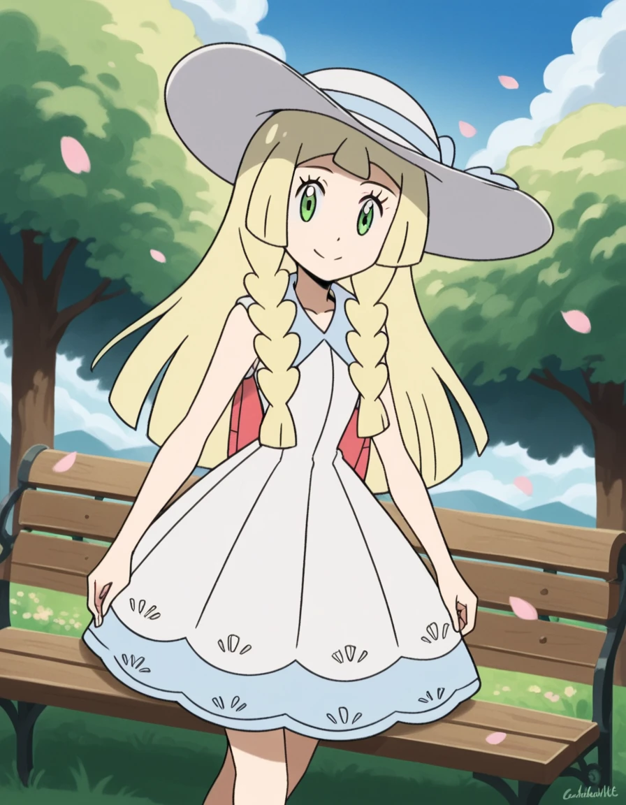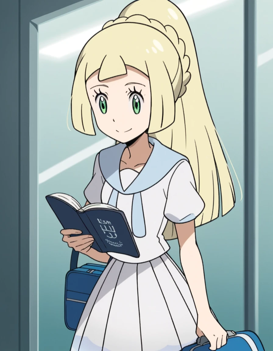 <lora:pokemon-lilie-anime-ponyxl-lora-nochekaiser:1>, lillie \(pokemon\), blonde hair, blunt bangs, green eyes, long hair,