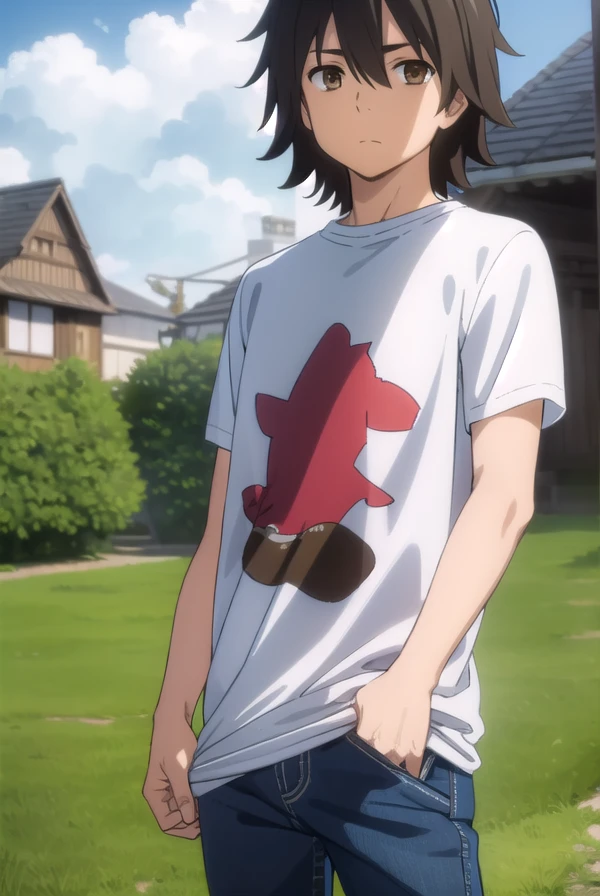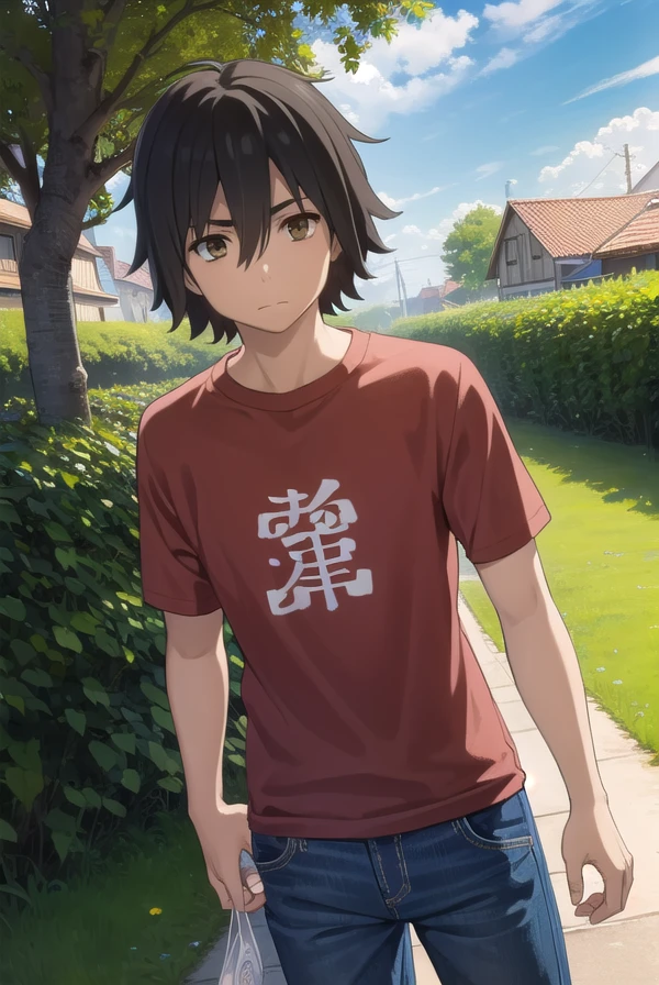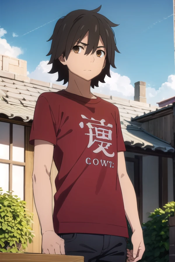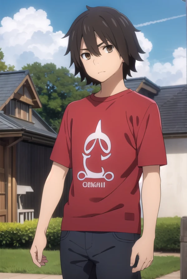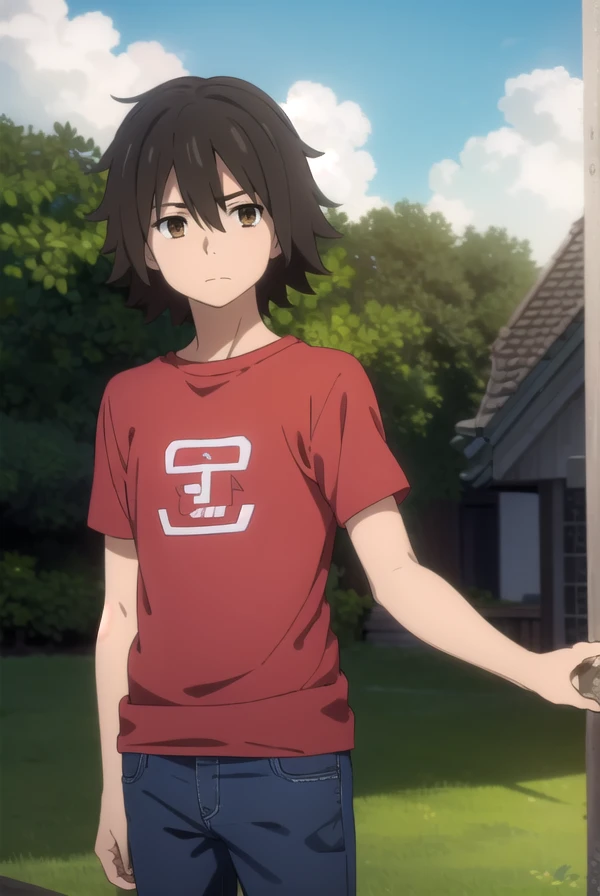 jinta yadomi, black hair, male focus, (brown eyes:1.3),