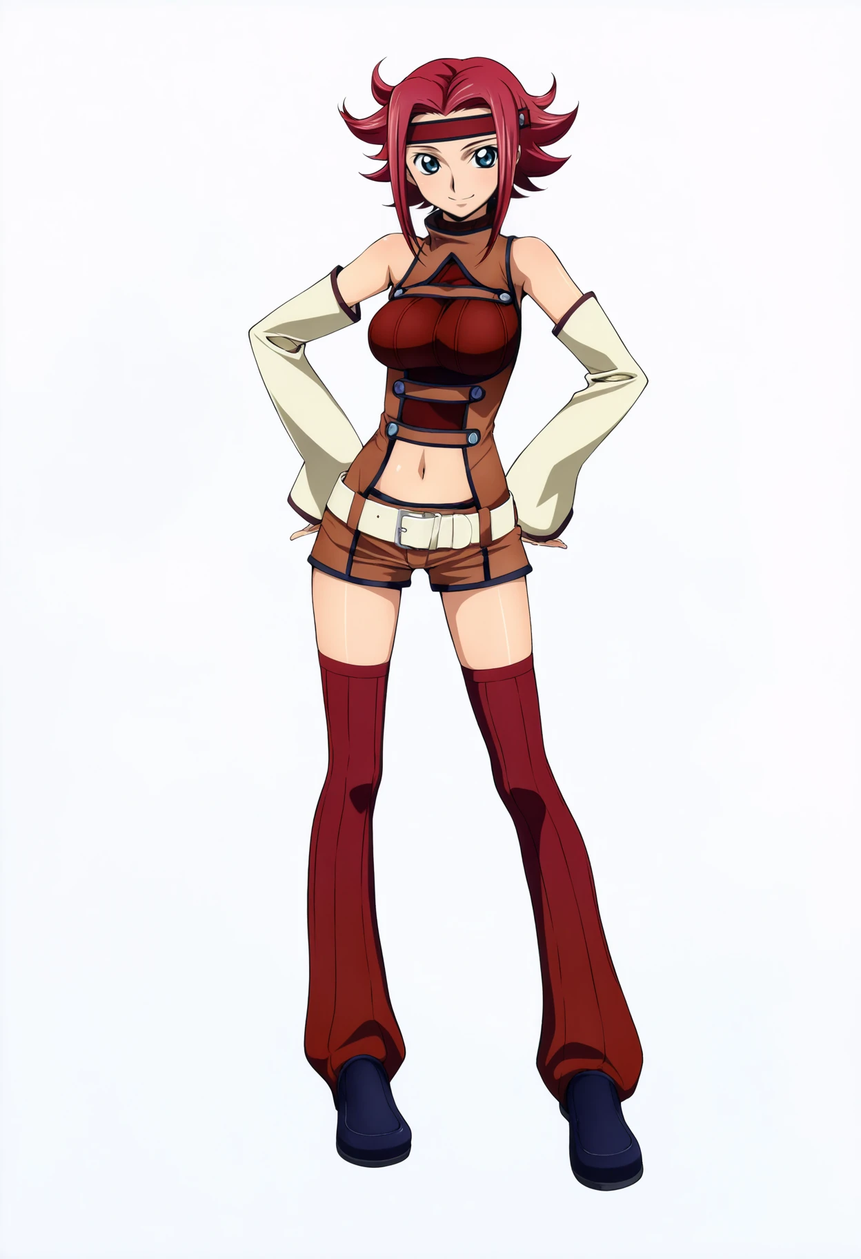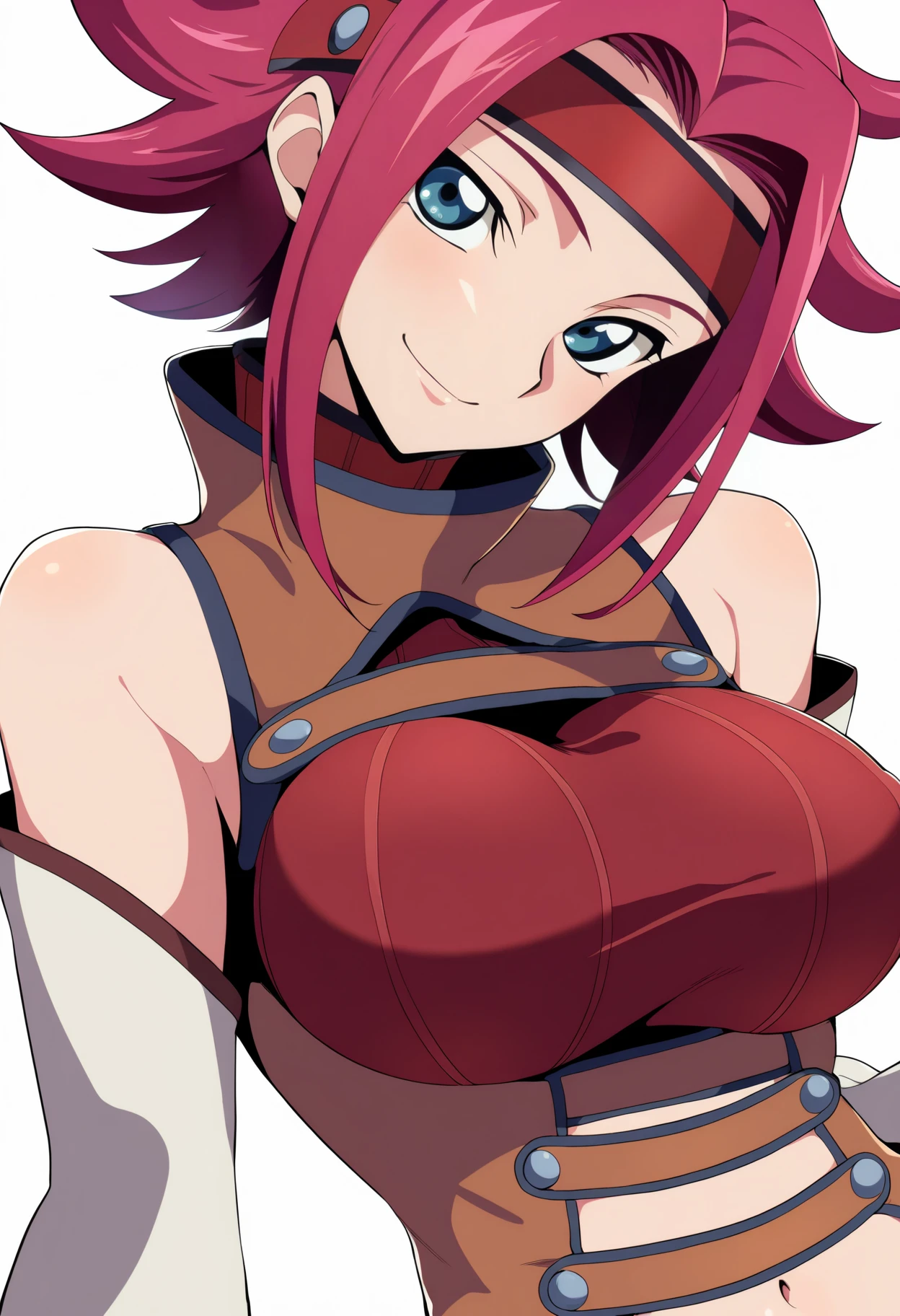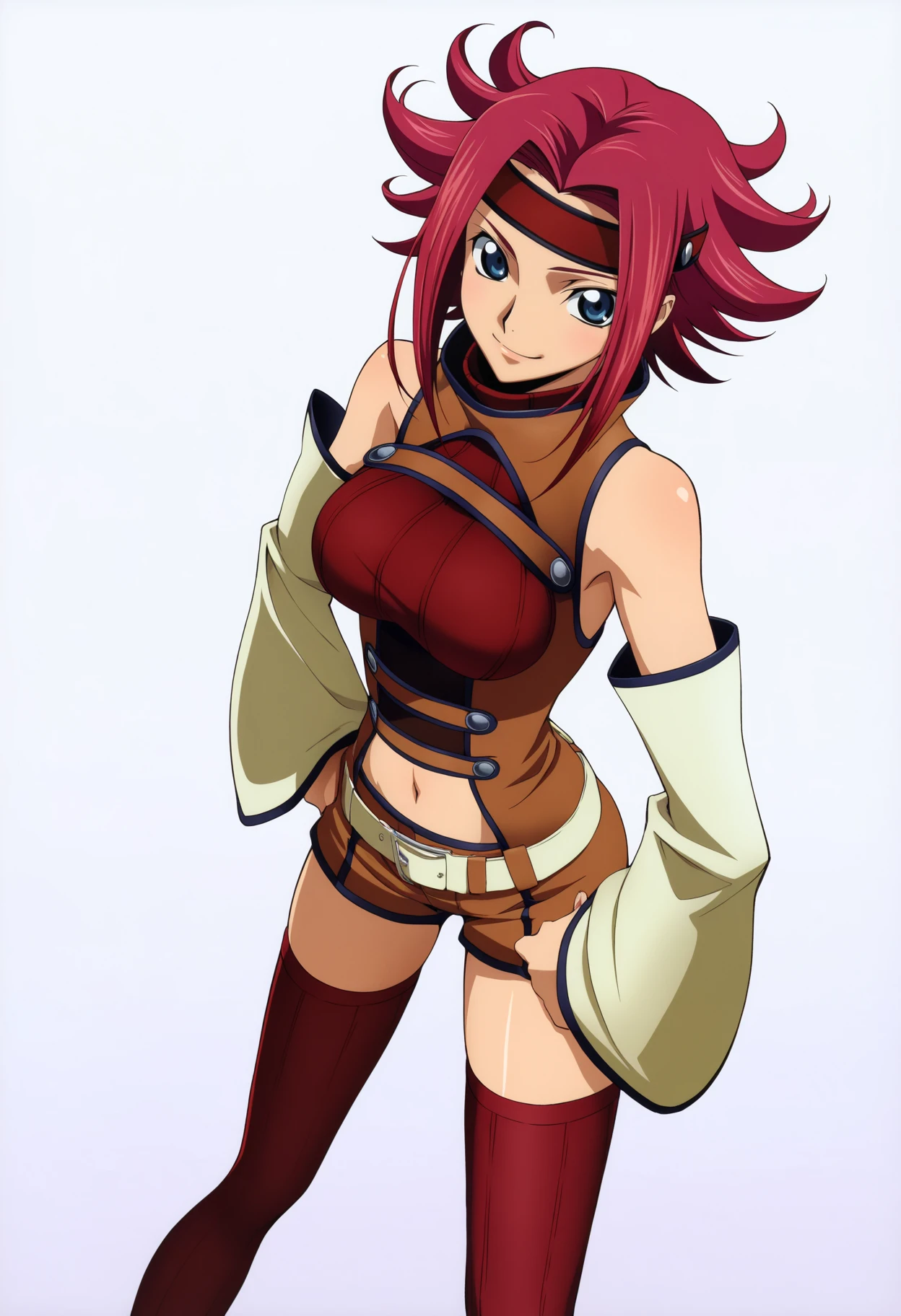 Basic prompts : 1girl, kouzuki kallen, red hair, short hair, blue eyes, flipped hair, headband