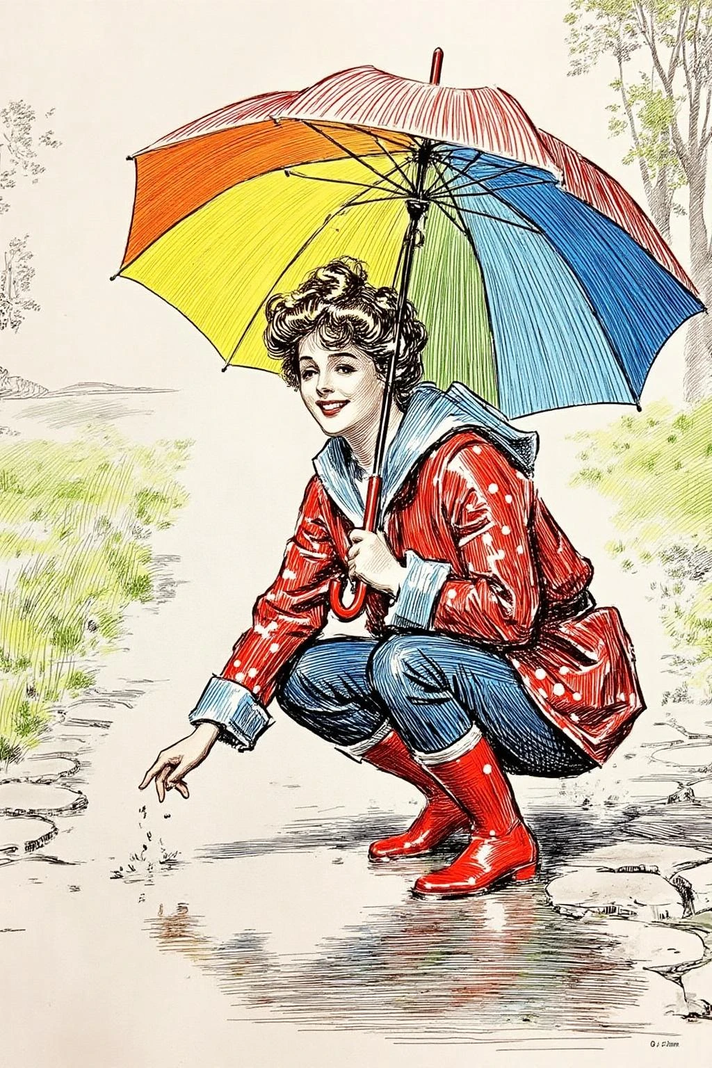 It can be hard to coax the LoRA to produce color images, because the training dataset contains only B & W illustration as typical of the period.