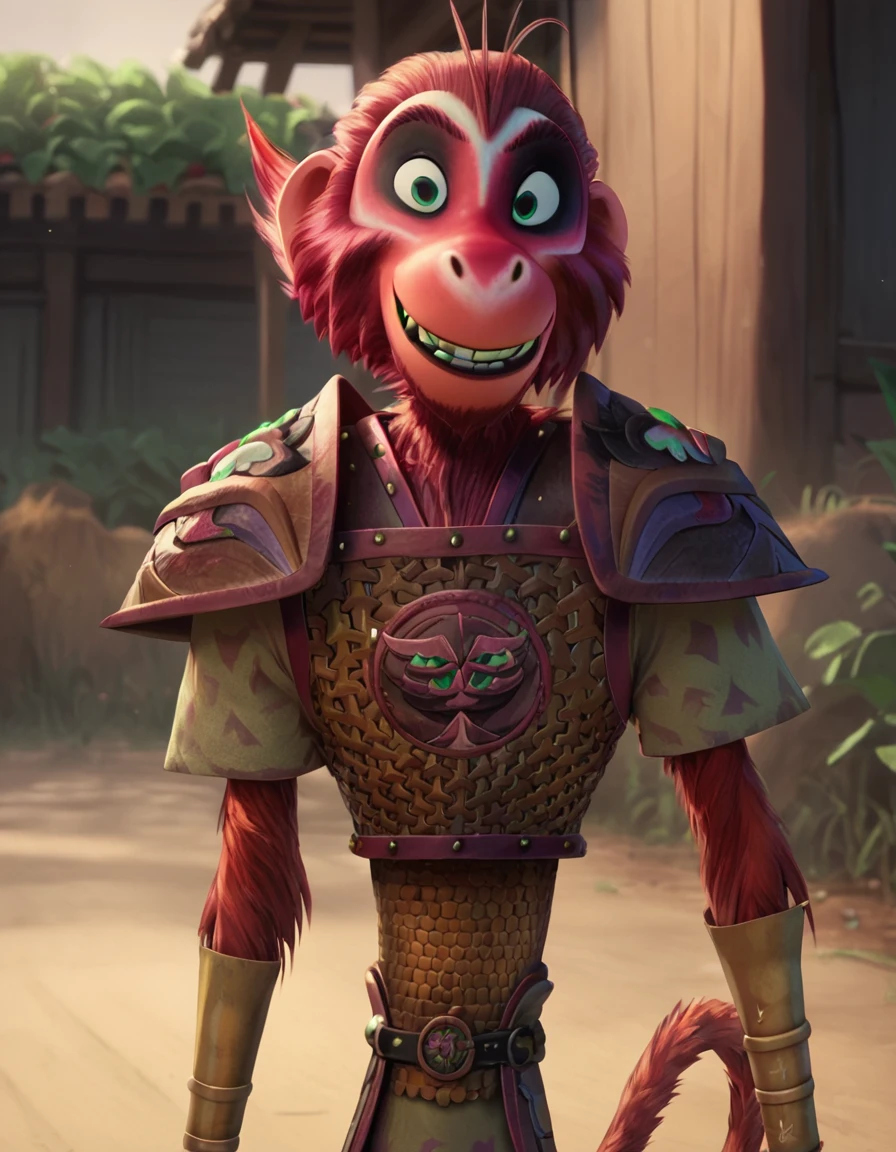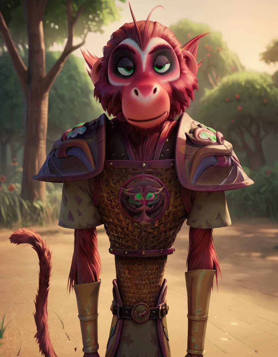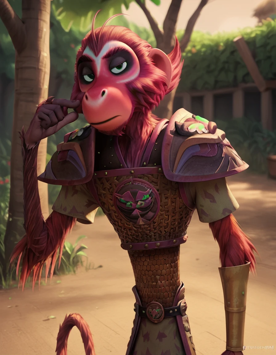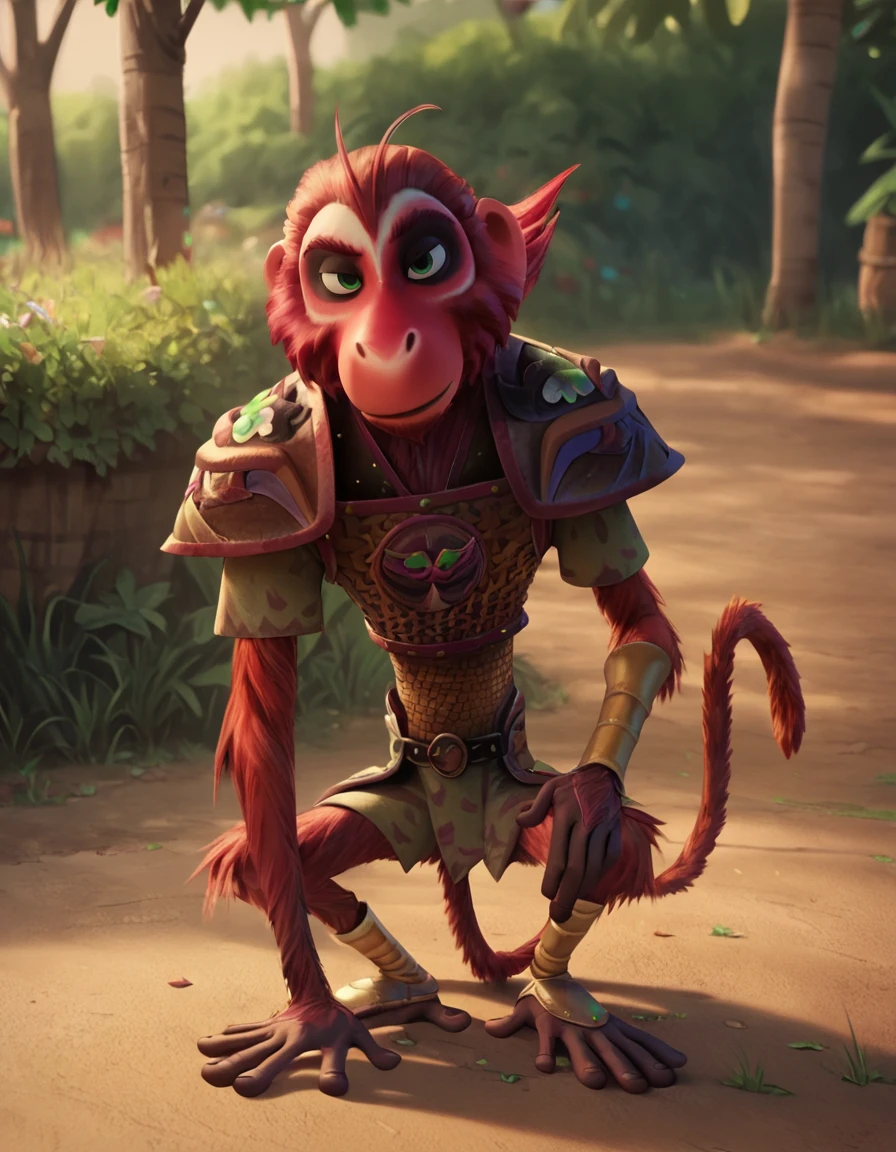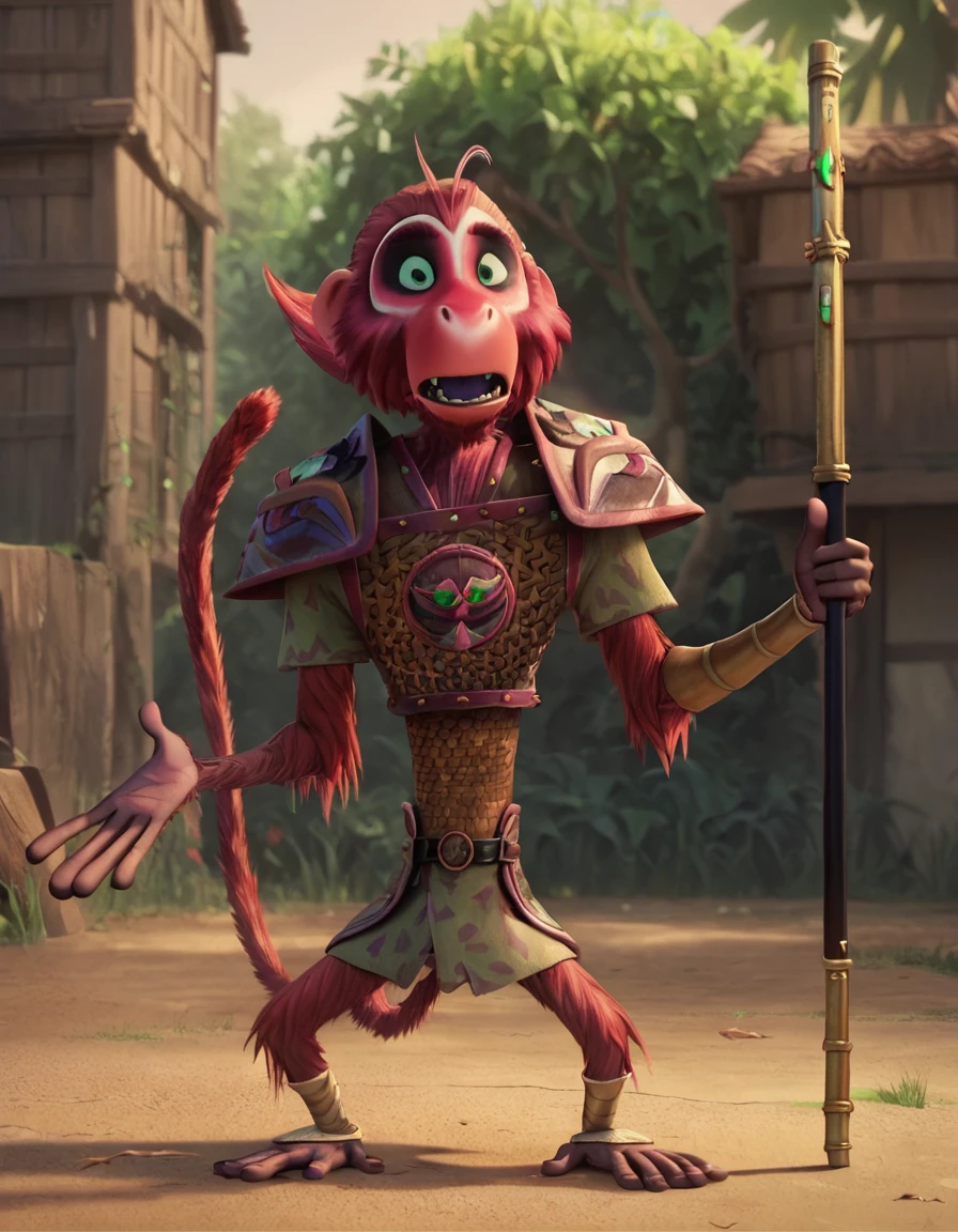 monkeyking, solo, furry male, furry, red hair, monkey, 1boy, armor, green eyes, polearm