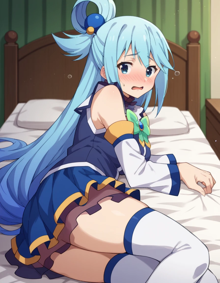 aqua \(konosuba\), long hair, blue eyes, hair ornament, very long hair, blue hair, hair rings, single hair ring, hair bobbles,