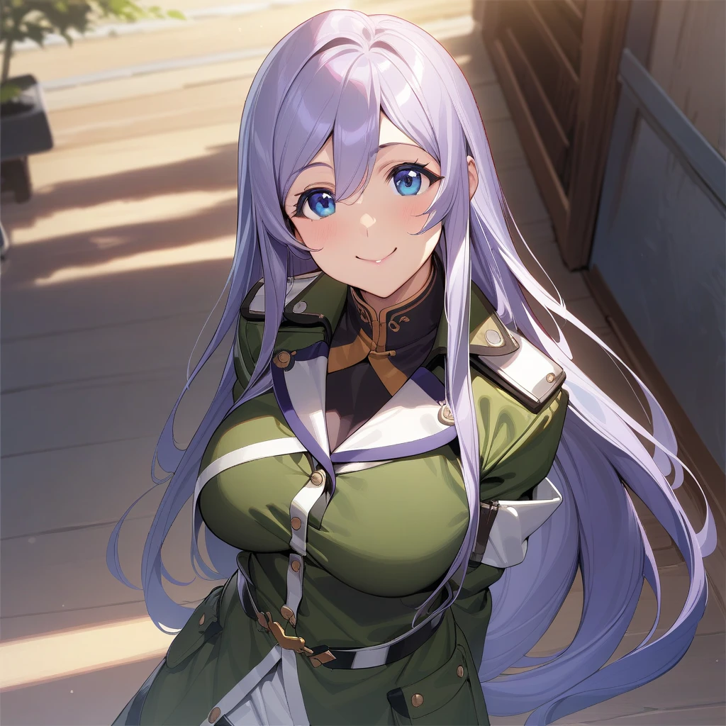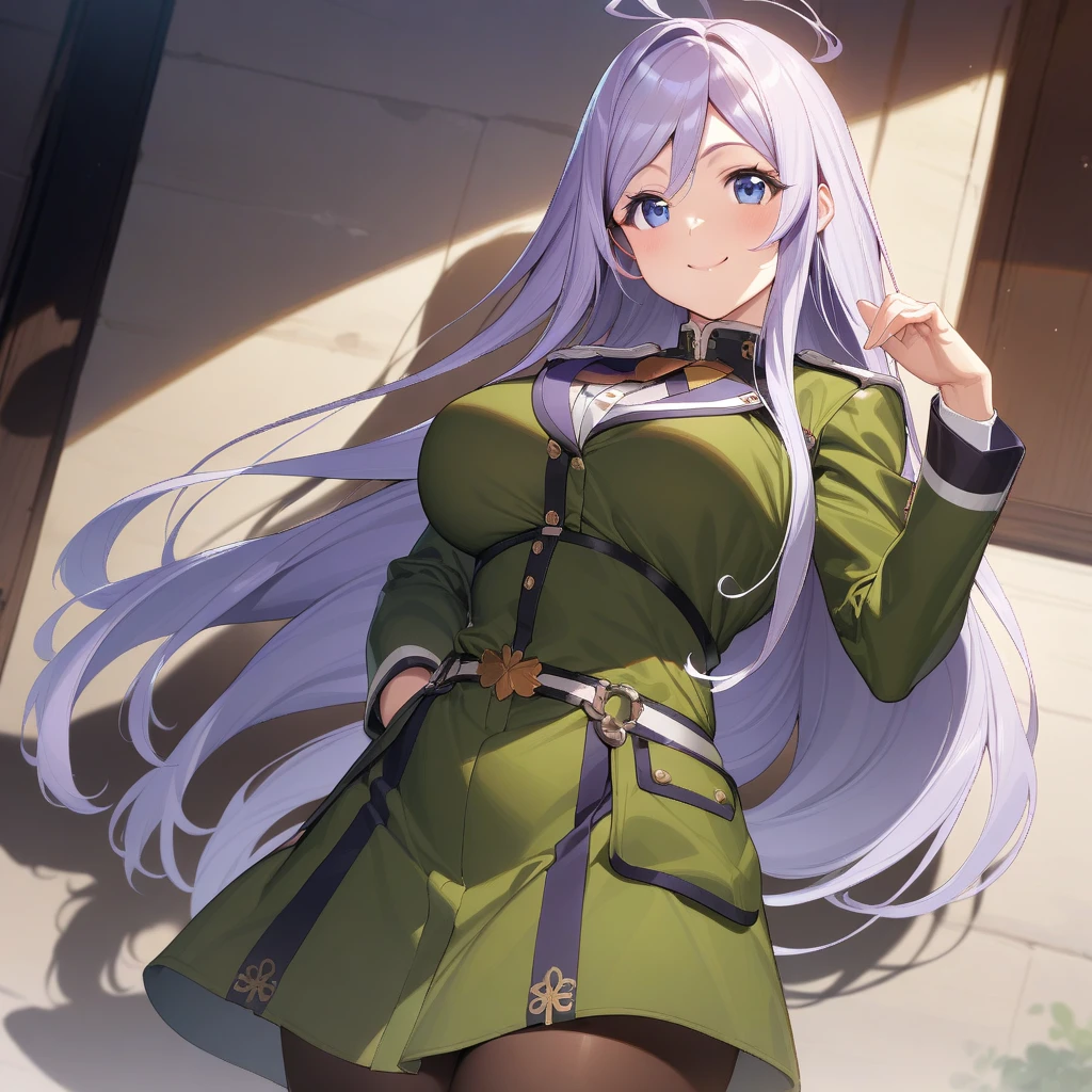 anju_emma, purple hair, long hair, blue eyes, large breasts,