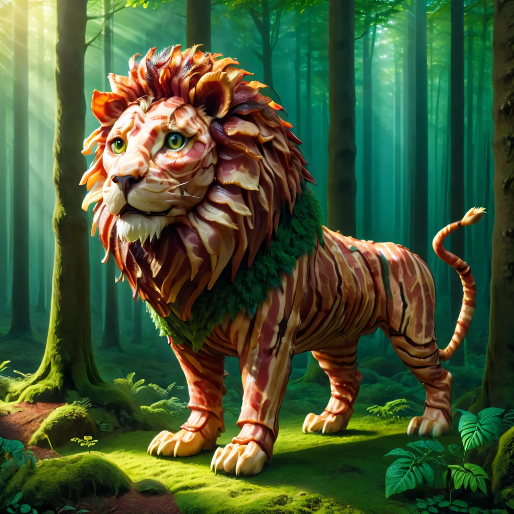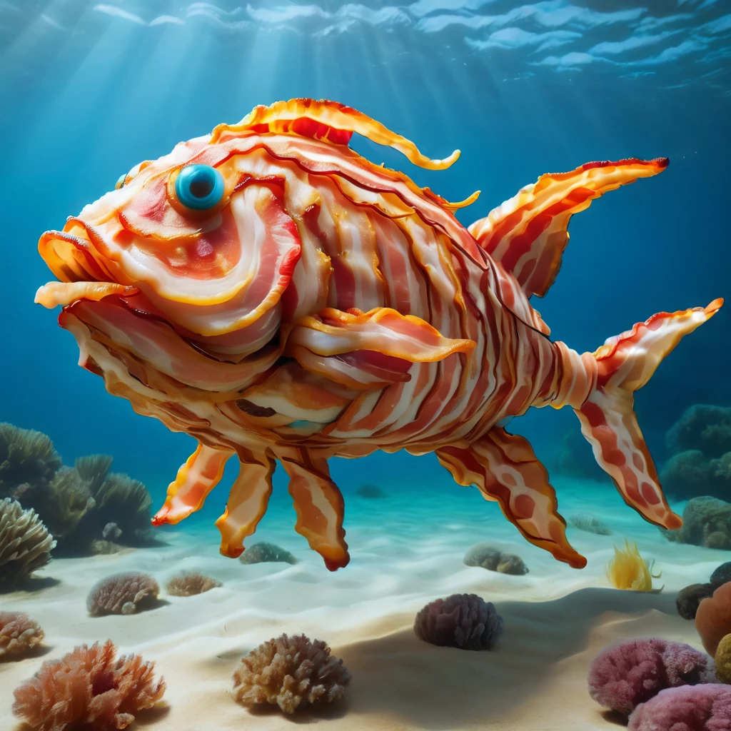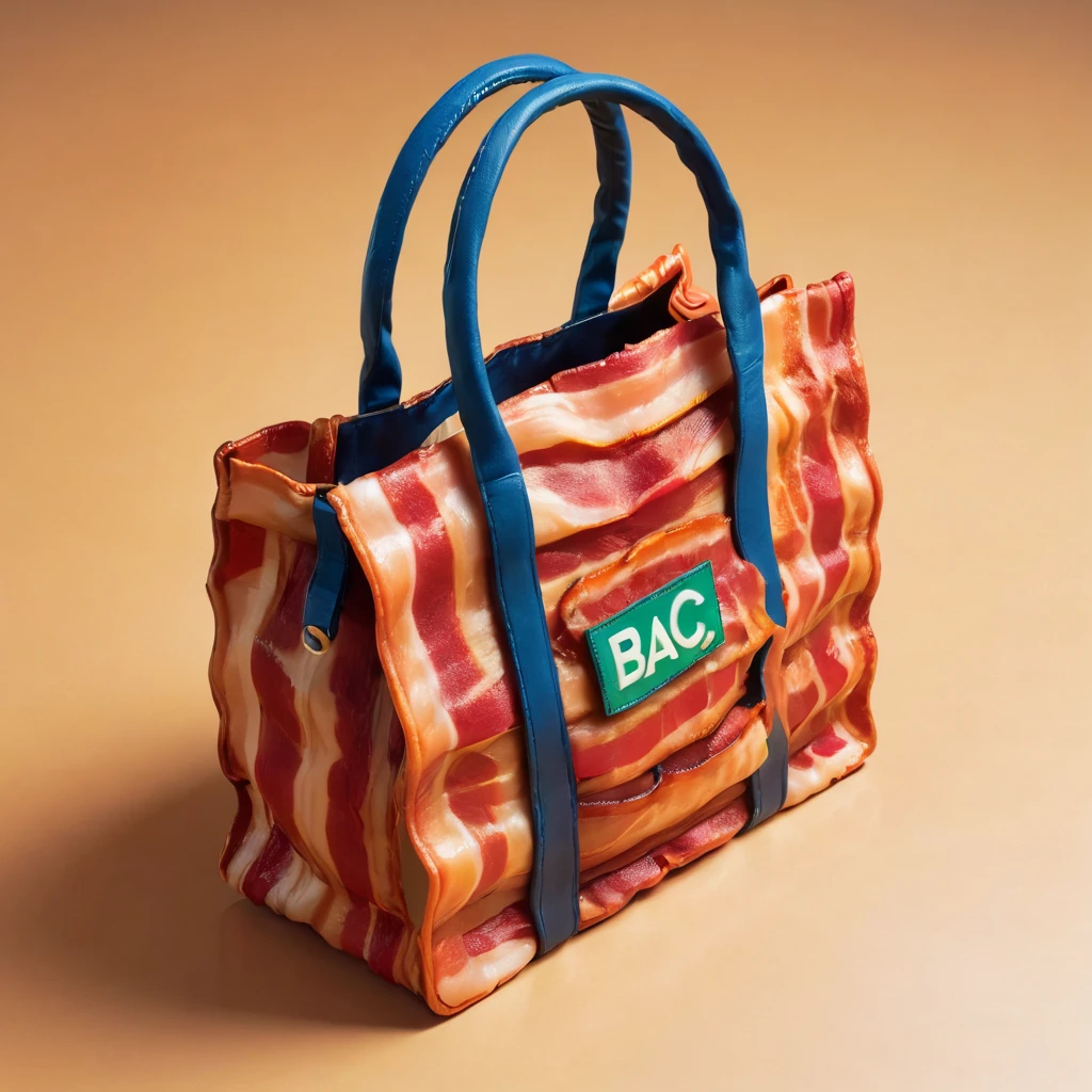 Try made out of b4c0n, or made out of bacon in the prompt could get better results.