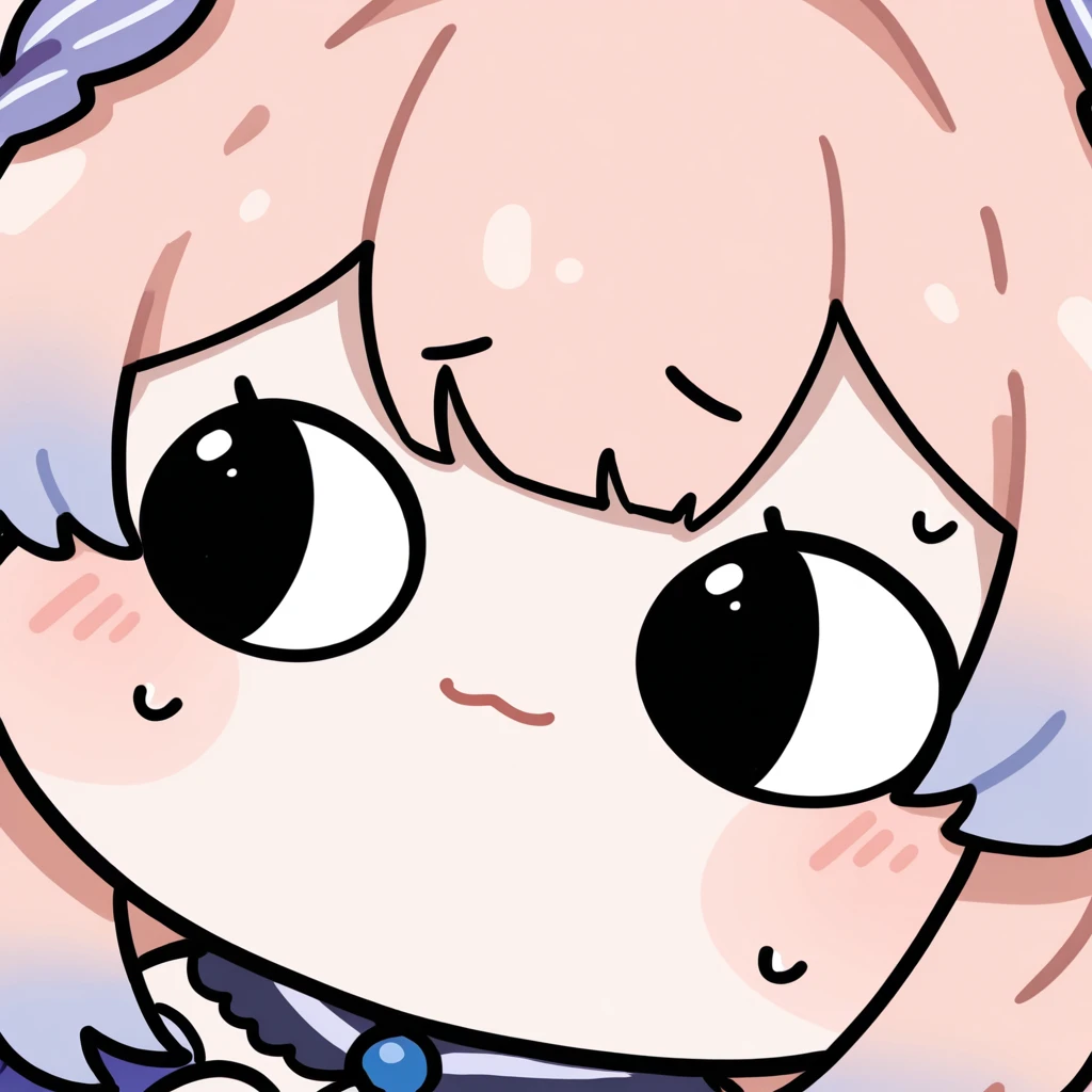 1girl, solo, blush, closed mouth, sweat, black eyes, :3, chibi, deformed
