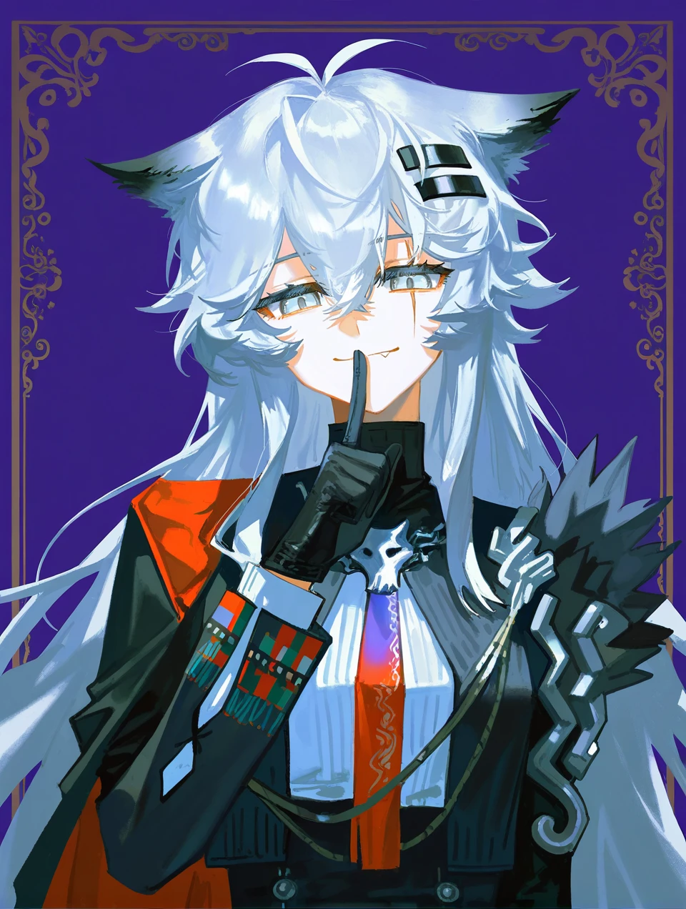 lappland the decadenza \(arknights\),long hair,very long hair,hair between eyes,antenna hair,messy hair,scar across eye,animal ears,wolf ears,hairclip,wolf girl,