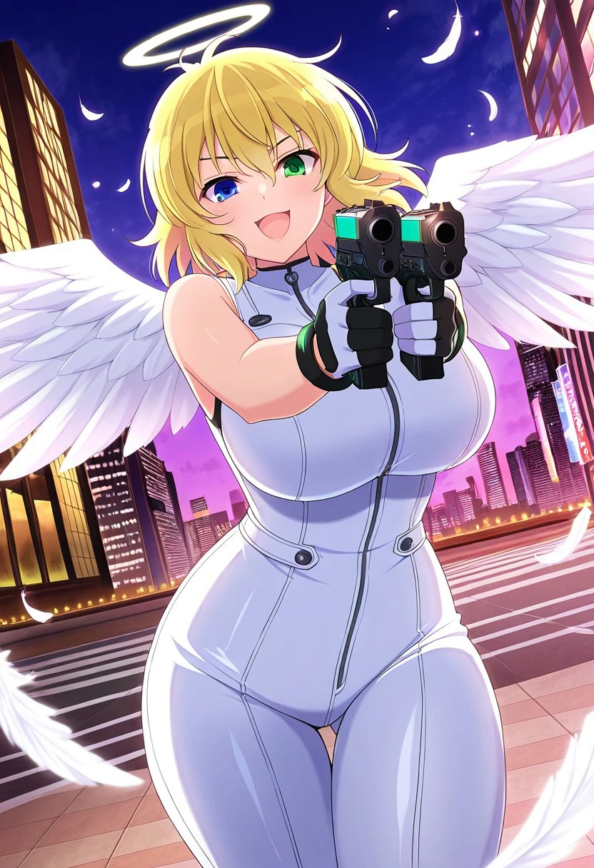 Ryōna,yellow hair,short hair,heterochromia ,green eye,blue eye,huge breasts,