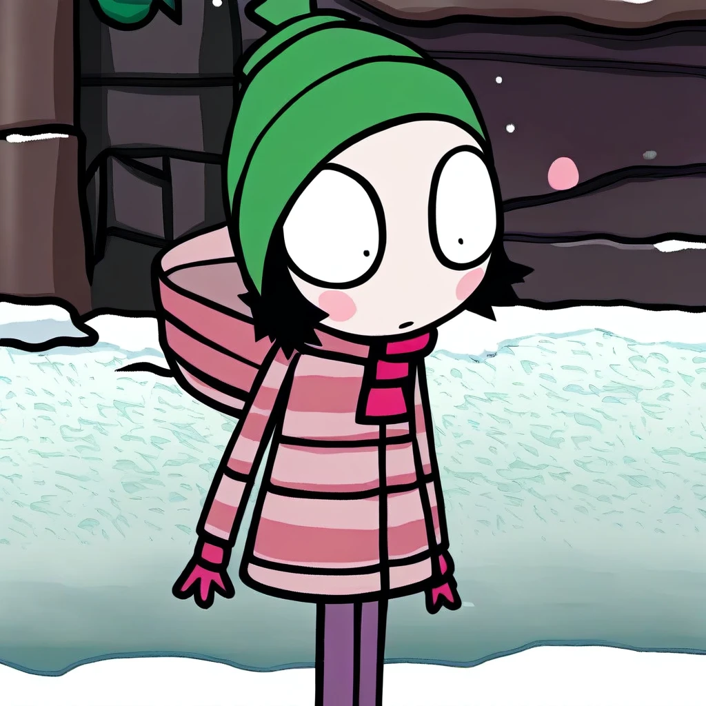 sarah_ad, 1girl, beanie, black hair, short hair, blush stickers, coat, hood, pants