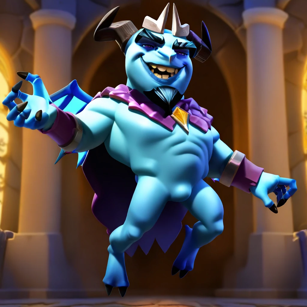 minion_prince, blue skin, Purple eyes, horns, wings, Black nails, crown